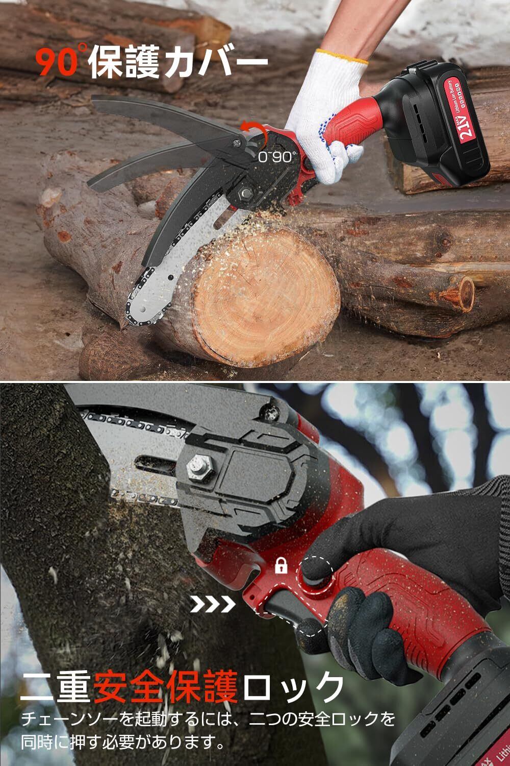 【新着商品】チェーンソー 充電式 電動 大容量バッテリー2個搭載 小型チェーンソー 21V 3.0Ah電量表示 片手操作 軽量でパワフル 薪割り/薪作り/枝切り/庭木の剪定/竹の伐採 収納ボックス付き 日本語取扱説明書付き | allstore3