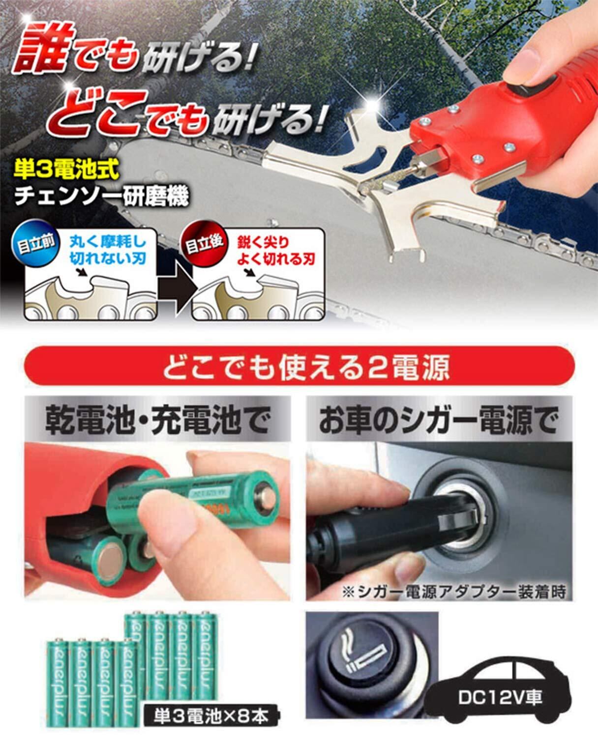 ニシガキ工業 チェンソー研研 乾電池/充電池式 シガー電源アダプター付き N-812