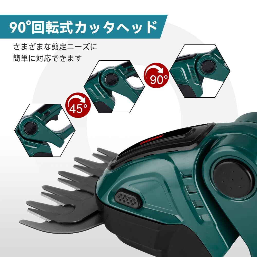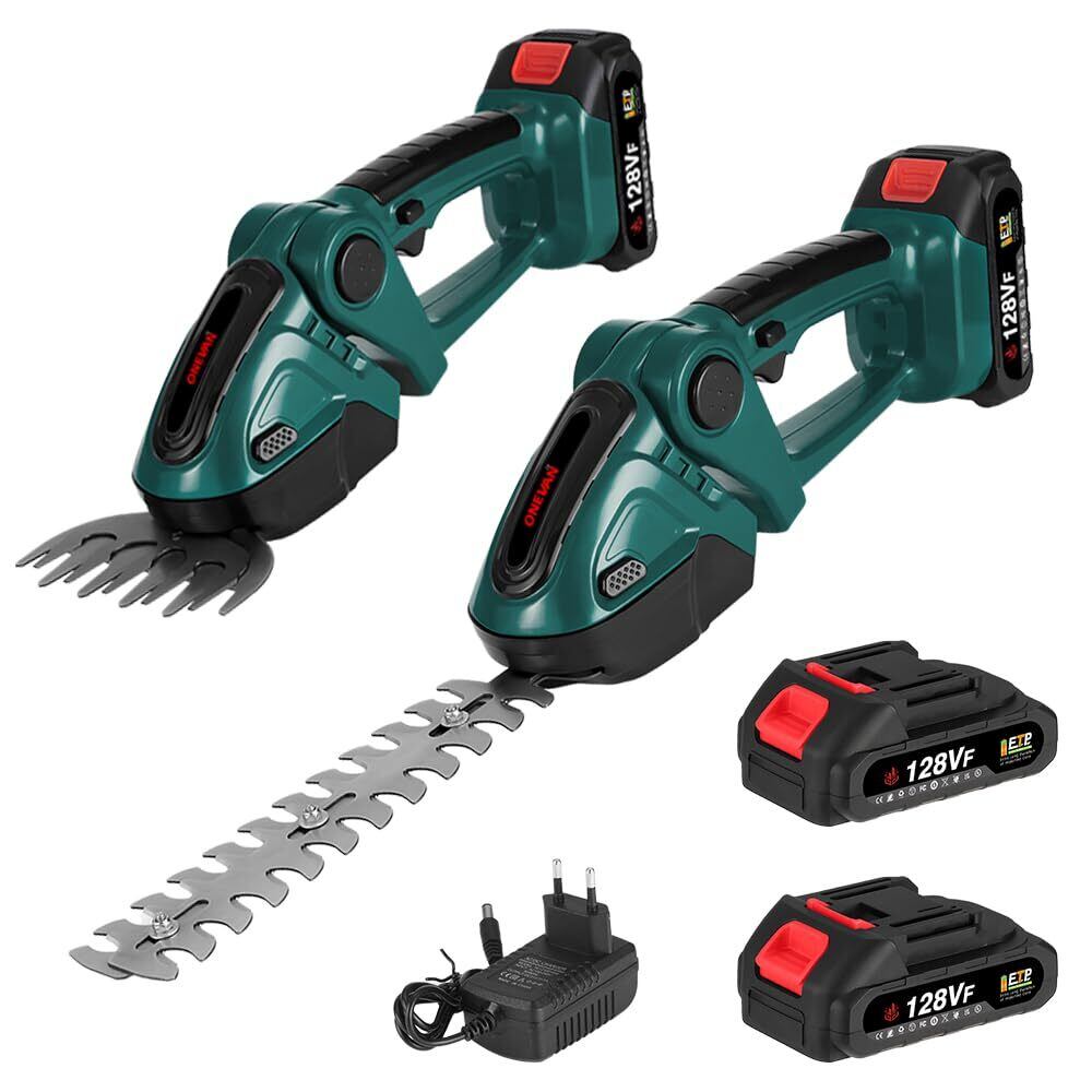 【人気商品】ONEVAN 芝生バリカン ヘッジトリアー 1台2役 しばかりき 電動 充電式 両刃駆動 剪定バリカン コードレス 草刈りバリカン 最大切断径8mm トリマー刈幅200mm バリカン刈幅100mm 軽量 静かさ 二重安全ロック 枝切り バッテリー付き (ダークグリーンーヘッド調整可能)