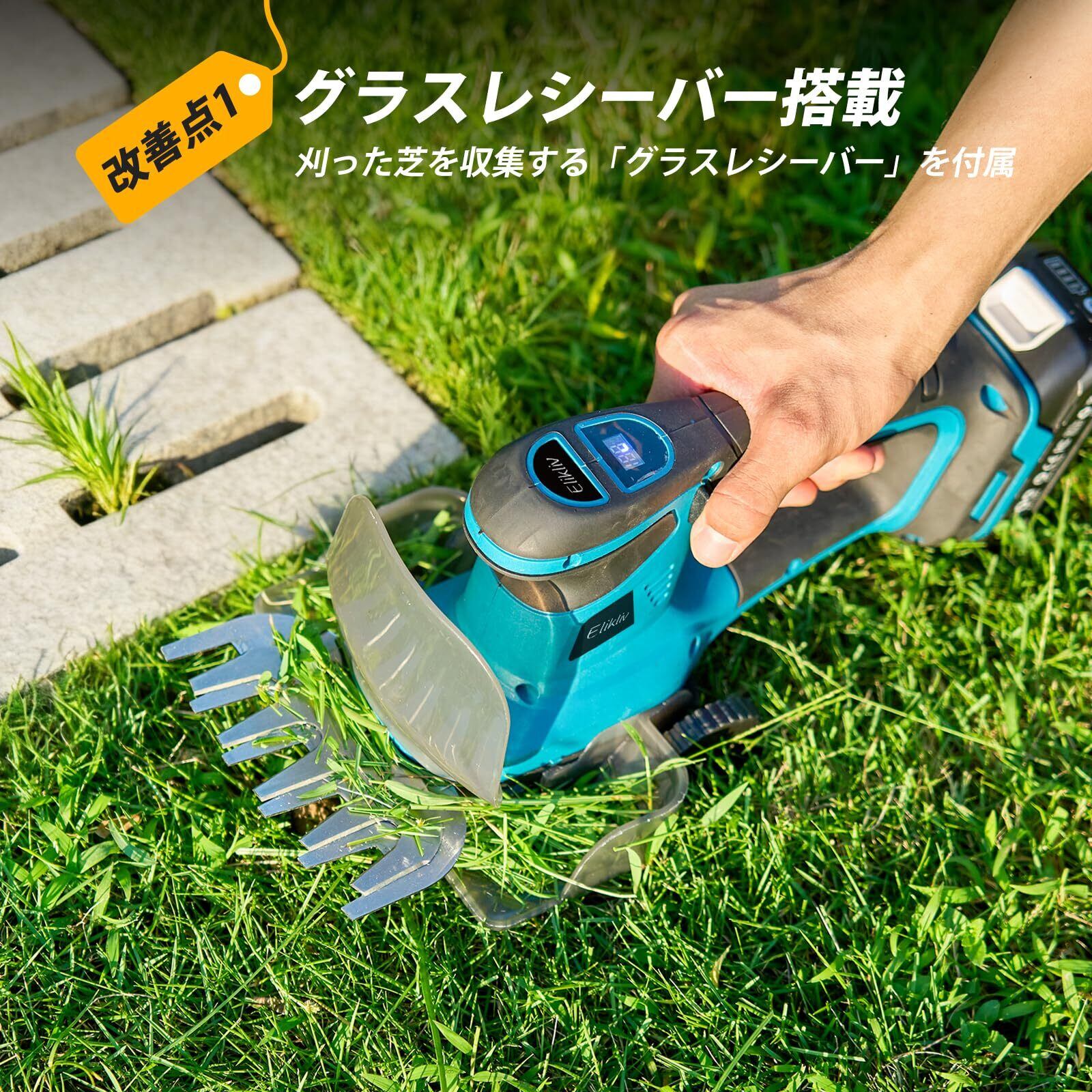 【特価セール】Elikliv 芝生バリカン ヘッジトリマー 充電式 1台2役 ガーデンバリカン 生垣バリカン 芝刈り機 コードレス 二重安全ロック グラスレシーバーと補助輪搭載 ブレード2枚付 バリカン刈幅130mm トリマー刈幅200mm 庭木剪定 植木 園芸 枝切り 垣根 大容量バッテリー2個付き剪定トリマー | allstore3