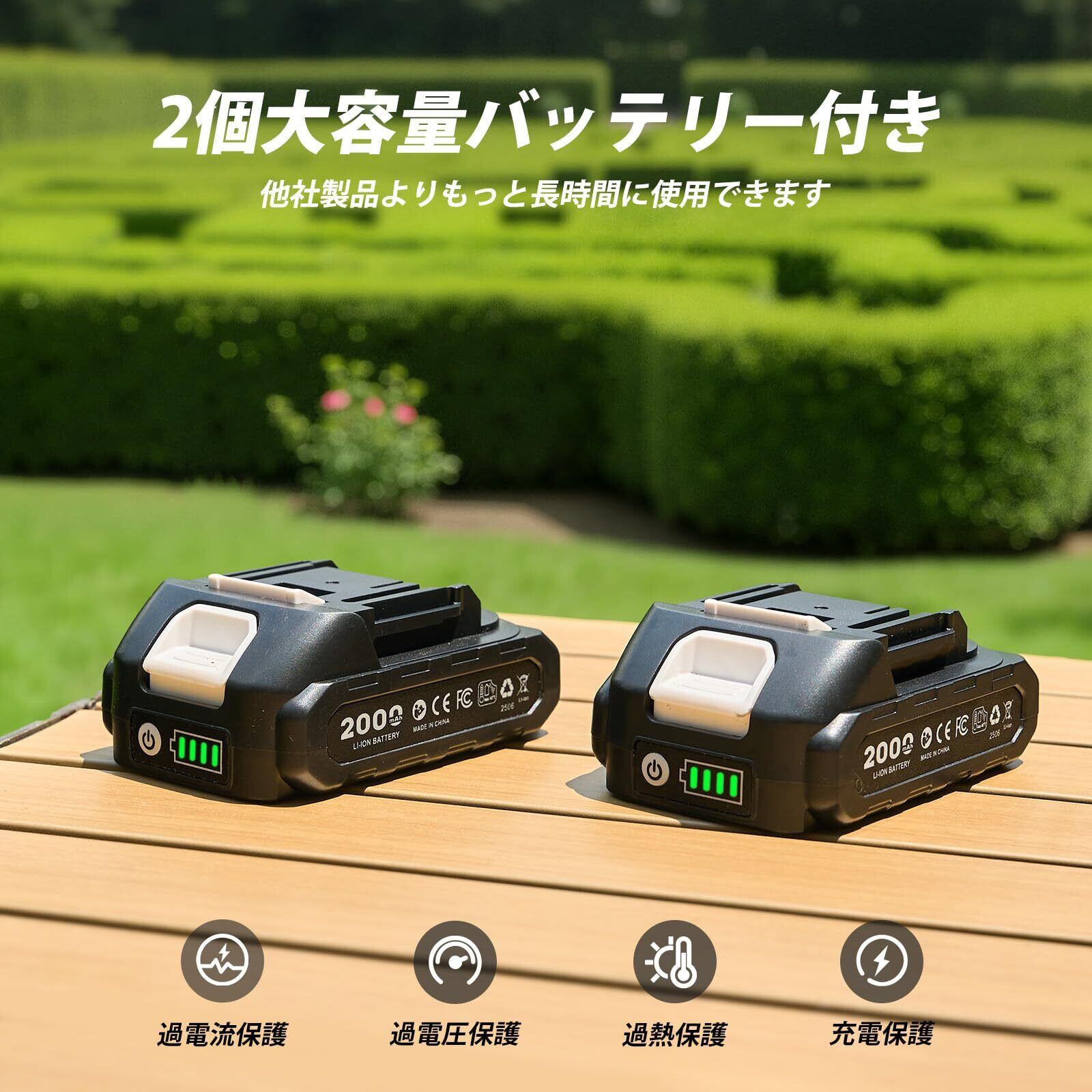 【大容量2000mAhバッテリー2個付き&LED電力表示】お客様の声にお応えし、2000mAh大容量バッテリー2個を標準装備。高速で効率的な作業をサポートするほか、LED電力表示により残量が一目で確認可能です。バッテリーには過熱・過電流・過電圧保護機能を搭載し、安全性を確保。残量表示ランプで充電レベルを常時確認できるため、作業中の突然の中断を防止。2個のバッテリーを交互に使用することで、長時間作業にも対応できます。