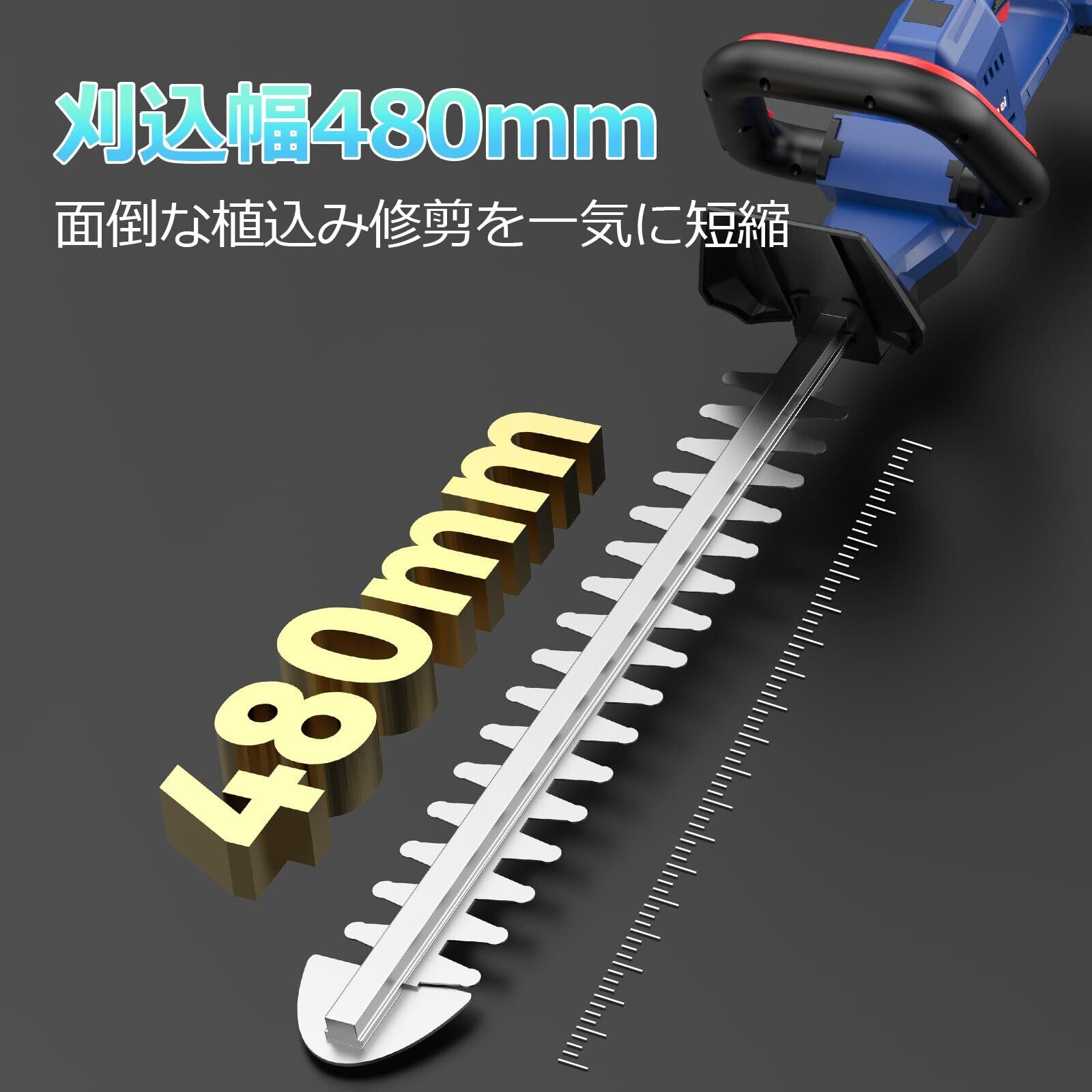 NANWEI ヘッジトリマー 充電式 電動ヘッジトリマー マキタ18Vバッテリー対応可能 有効刈り込み幅480mm 切断径18mm 両刃駆動 ブラシレスモーター 高速往復刈り コードレス電動トリマー ガーデントリマー 生け垣トリマー 剪定バリカン 植木バリカン 草刈りバリカン 本体のみ【充電器とバッテリー別売り】