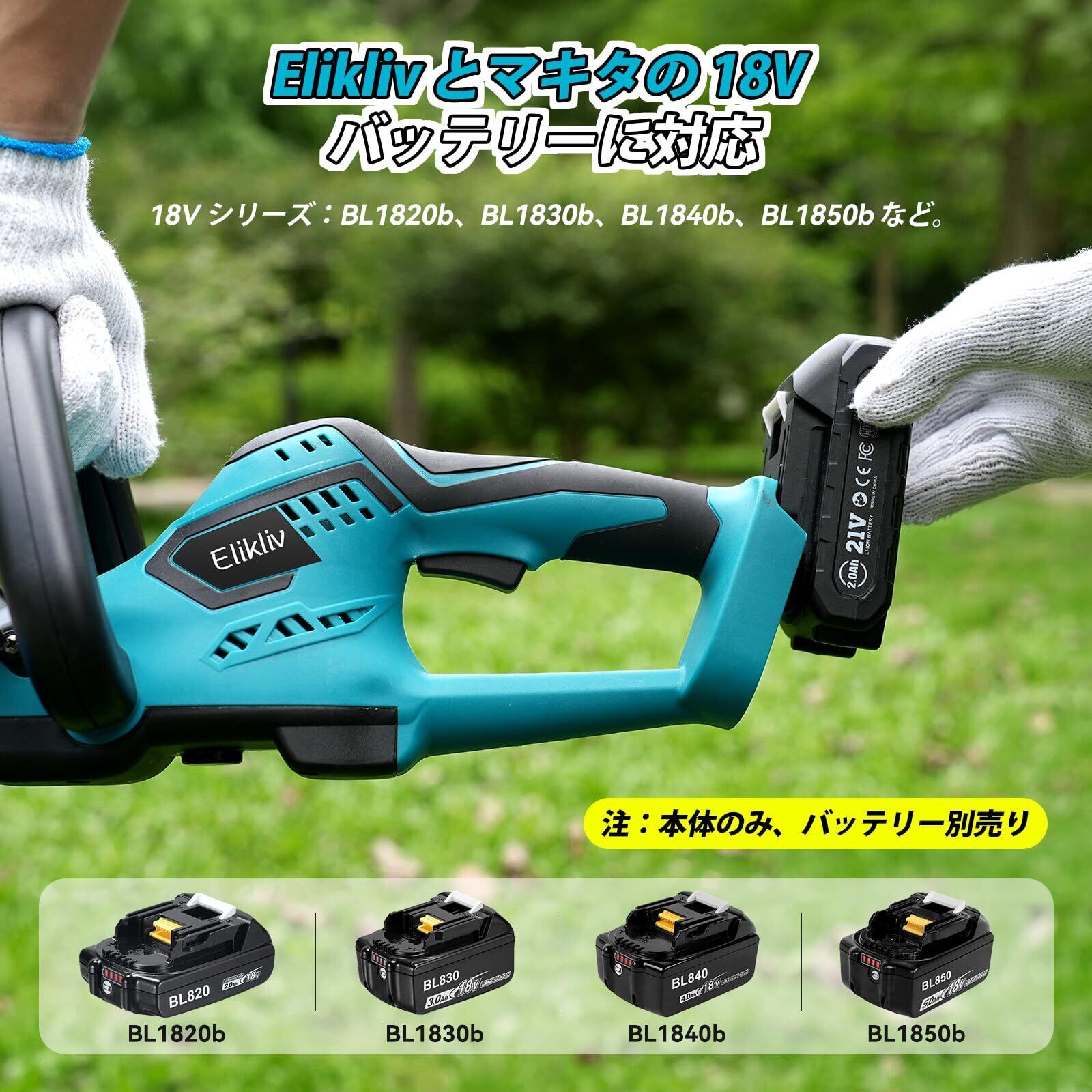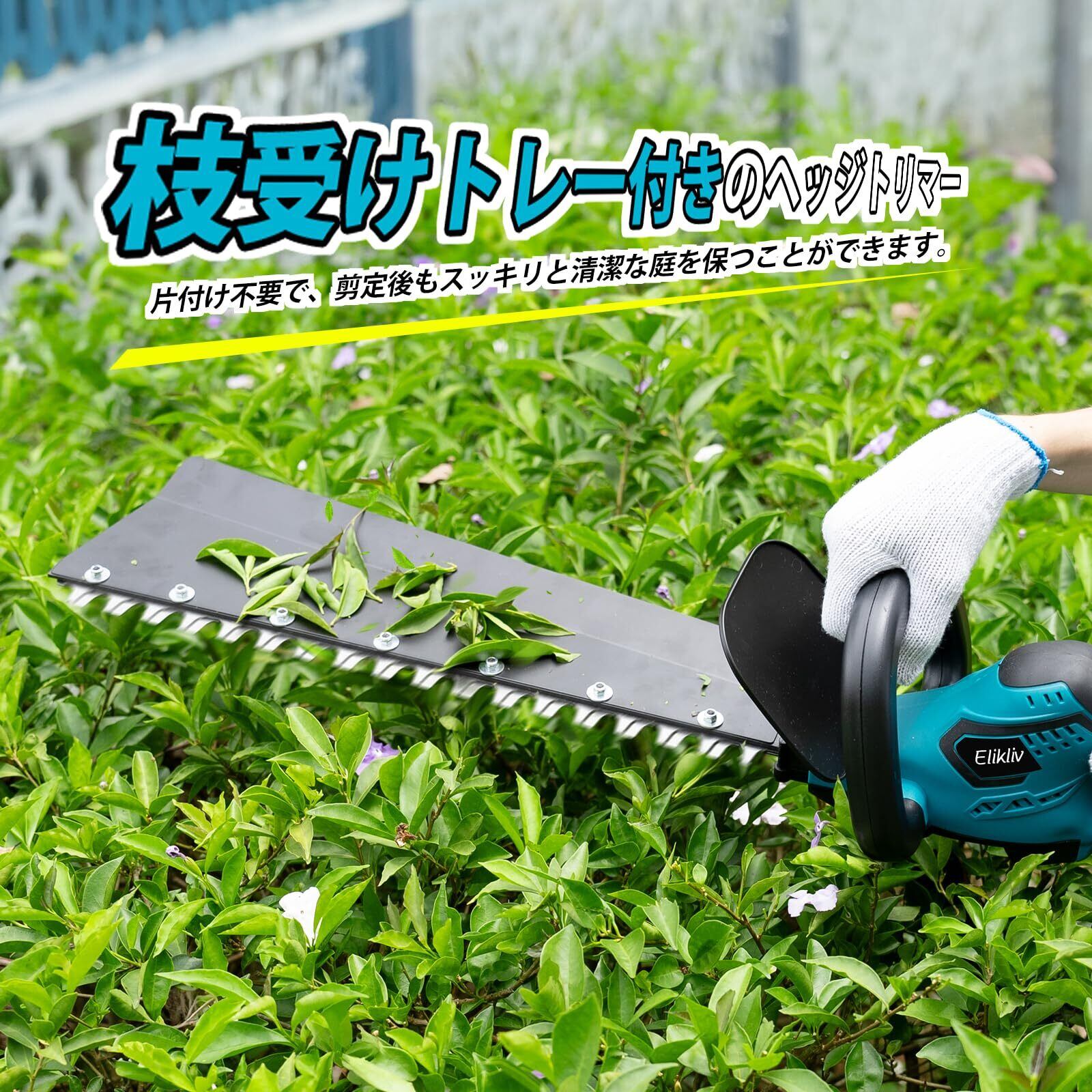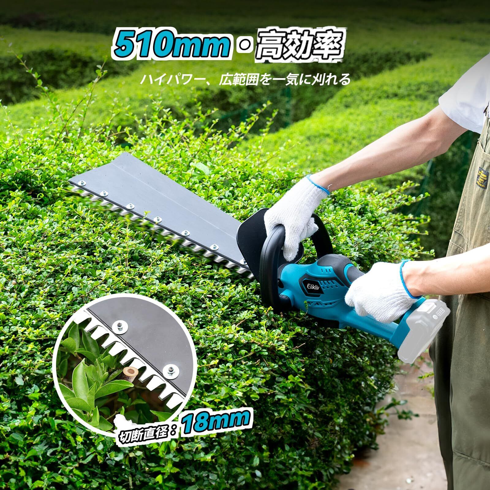 【2025年 Elikliv 電動ヘッジトリマー 充電式 剪定・生垣トリマー 510mm刈込幅/18mm切断径 枝受けトレー付き 高速カット コードレス 電動工具 マキタ18Vバッテリー互換 軽量・低騒音 本体のみ/バッテリー別売り 園芸用 剪定・枝切り・垣根刈りに最適