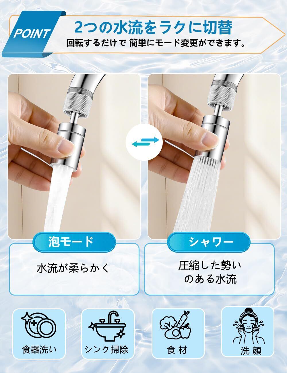 蛇口シャワー キッチン蛇口シャワー 首振【第2世代】ヘッド キッチン シャワー 節水 泡沫器 首振り 先端 スパウト 蛇口シャワーヘッド 泡沫器 水栓 交換 キッチン シンク掃除 台所 浴室 洗面室 トイレにも適用可能-蛇口エアレーターズル
