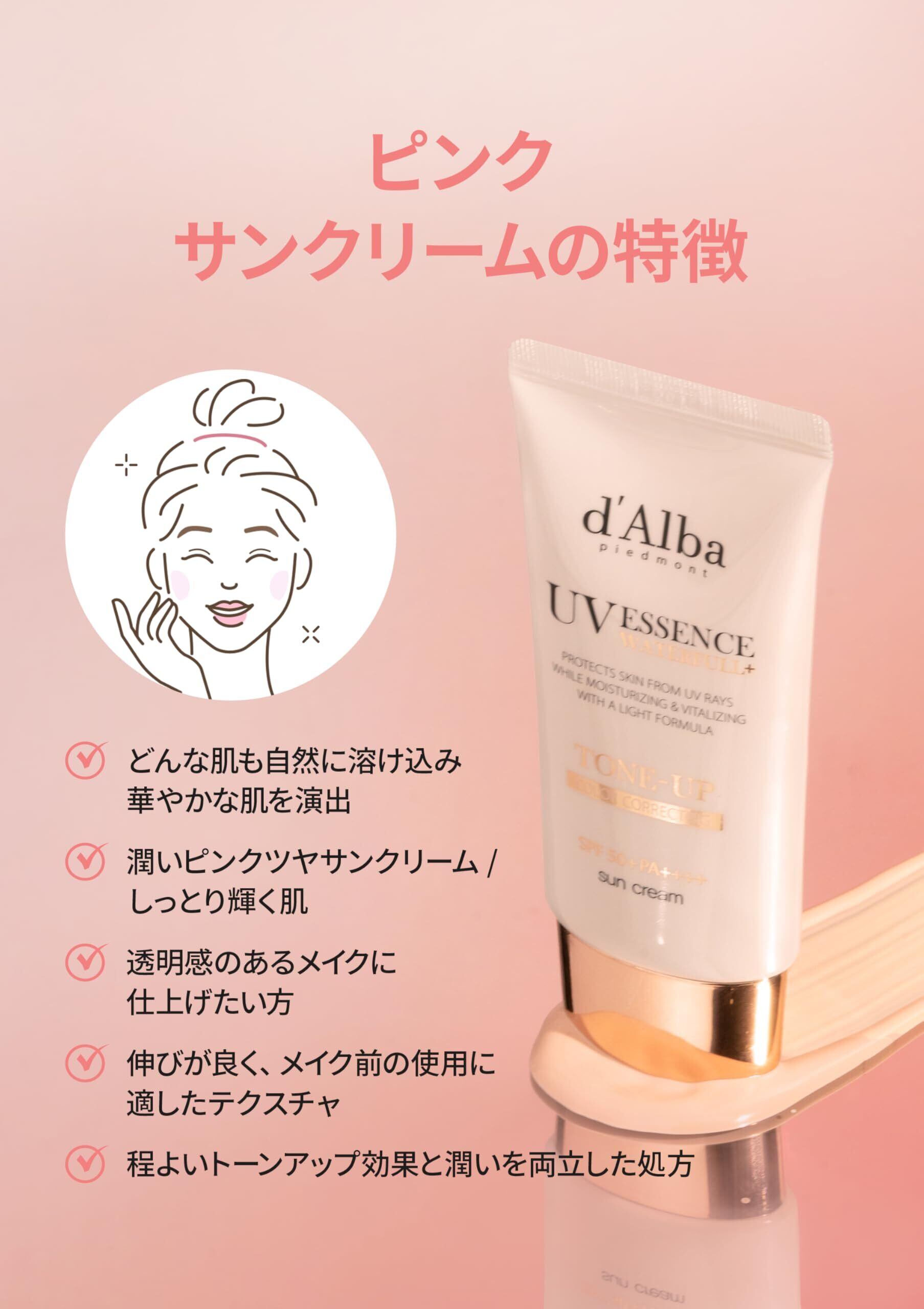 【特価商品】【d'Alba】ピンク(Pink) トーンアップサンクリーム (50ml) ダルバ 化粧下地 崩れにくい テカリにくい 日焼け止め ベースメイク カバーアップ