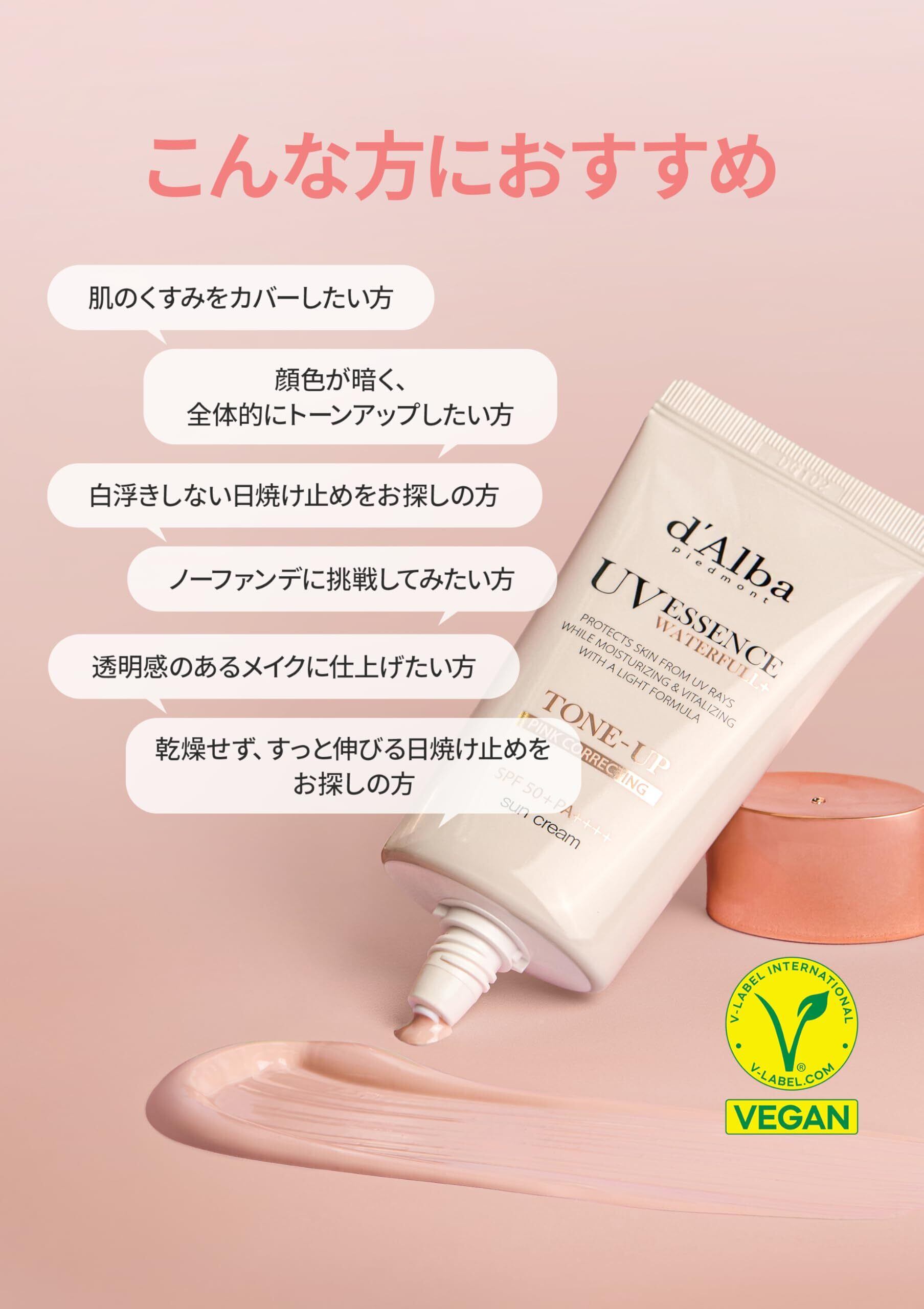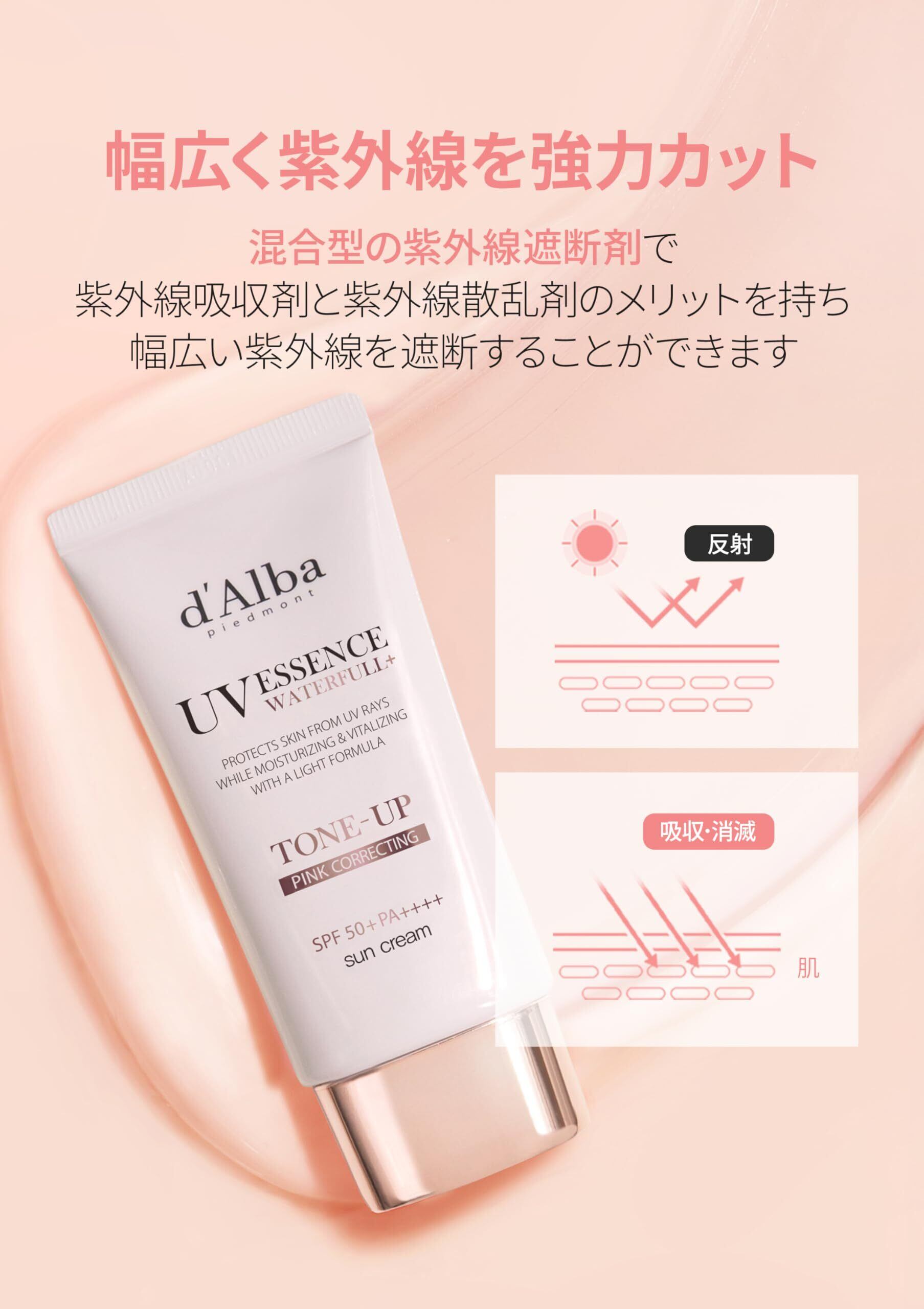 【d'Alba】ピンク(Pink) トーンアップサンクリーム (50ml) ダルバ 化粧下地 崩れにくい テカリにくい 日焼け止め ベースメイク カバーアップ