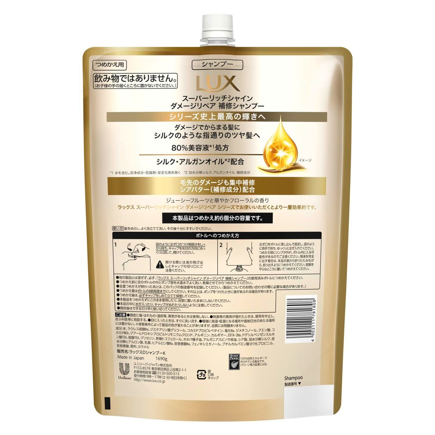 LUX (ラックス) スーパーリッチシャイン ダメージリペア シャンプー 詰め替え 大容量 1690g