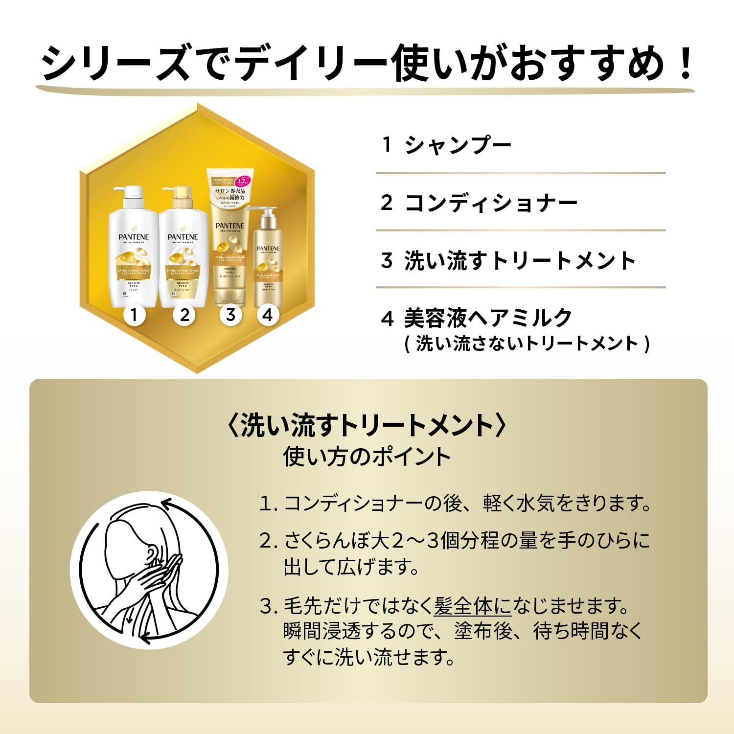パンテーン エクストラダメージリペア ケラチン* 1 配合シャンプー 切れ毛・枝毛等のダメージ髪も するんつやつや サロンクオリティの髪へ* 2