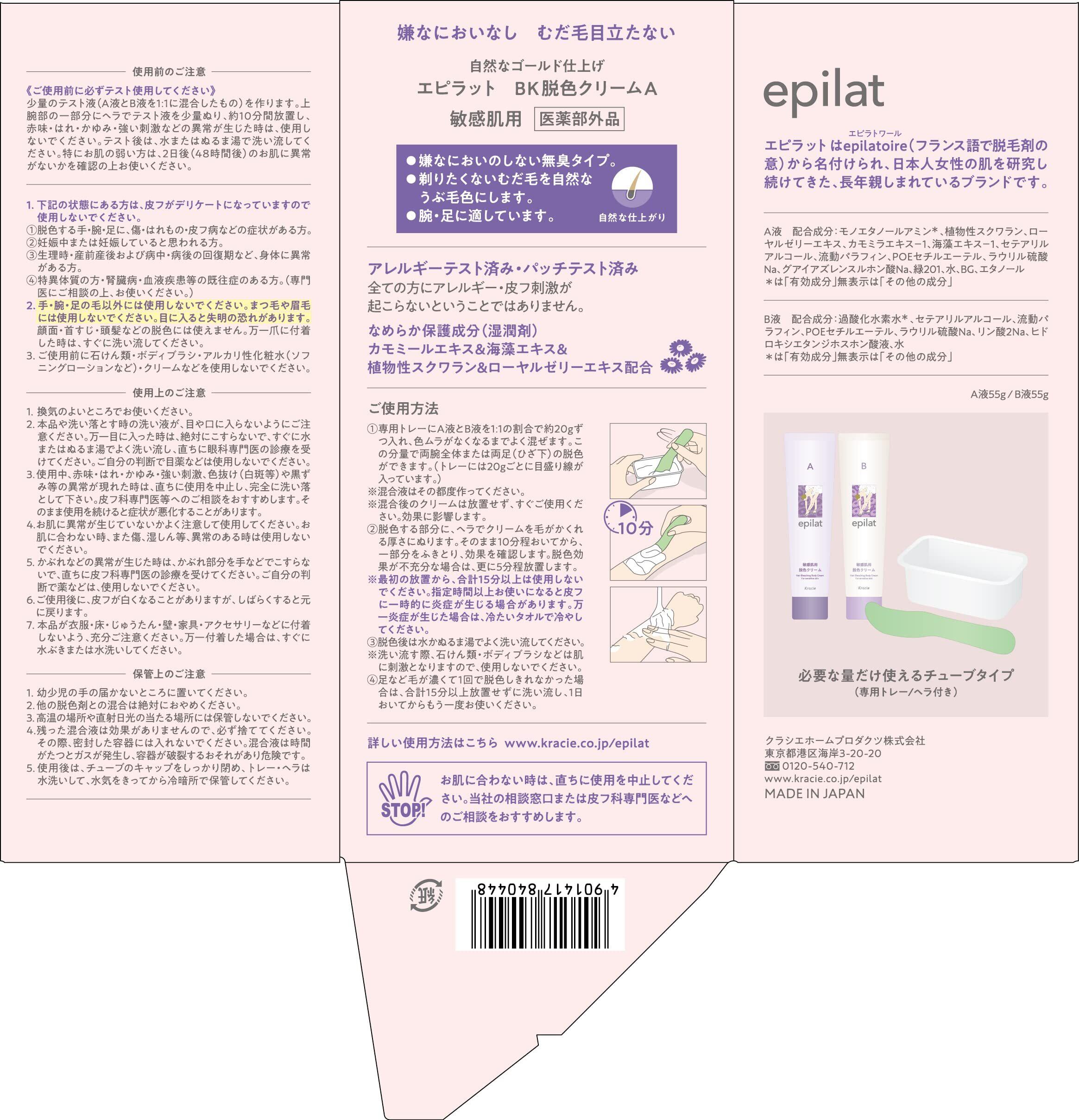 【医薬部外品】エピラット 脱色クリーム 敏感肌用 55g+55g ヘラ付き 1個 (x 1)