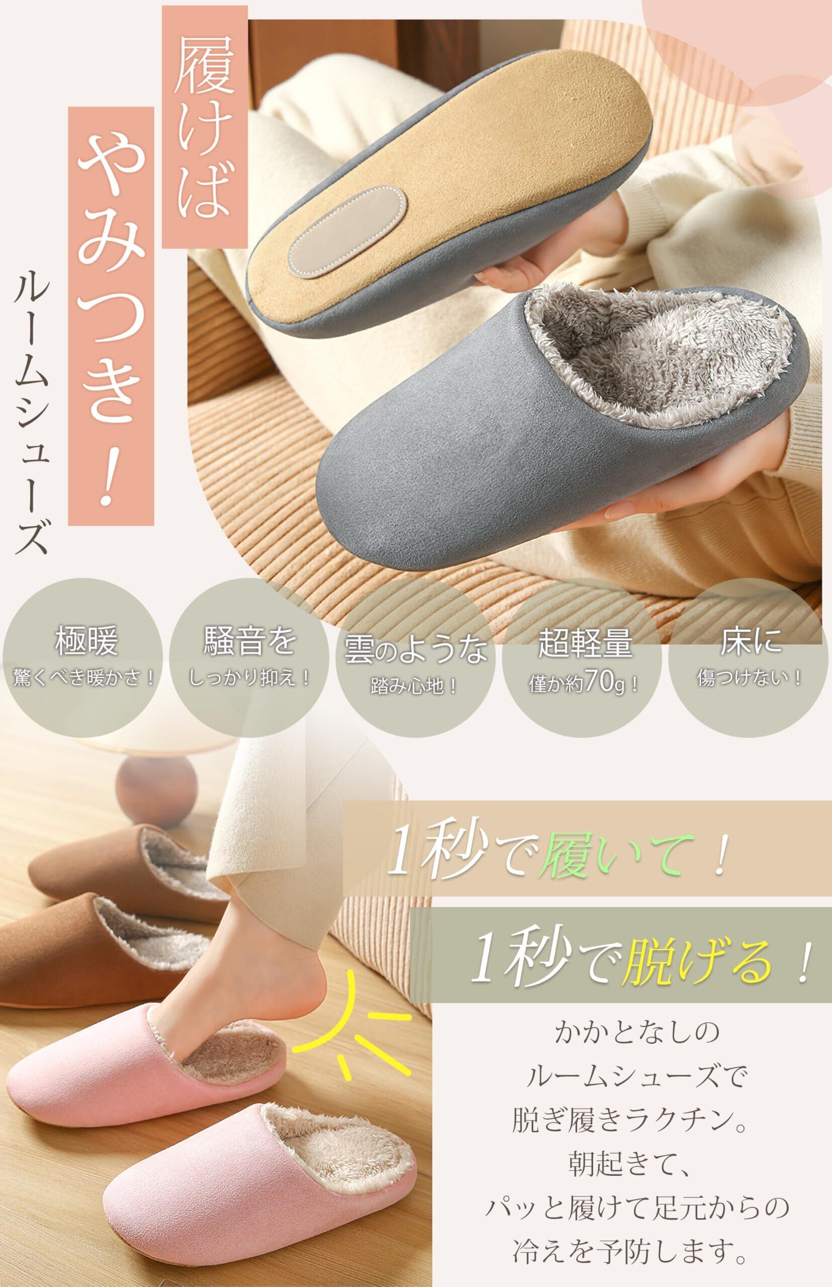 [Tophana] 【驚くほどの暖かさ】 ルームシューズ モコモコ スリッパ 冬用 【雲のような踏み心地・超軽量・消音設計】 温かいスリッパ 室内 室内スリッパ 来客用 防寒 かわいい 疲れない 滑り止め 厚底 洗濯可 男女兼用