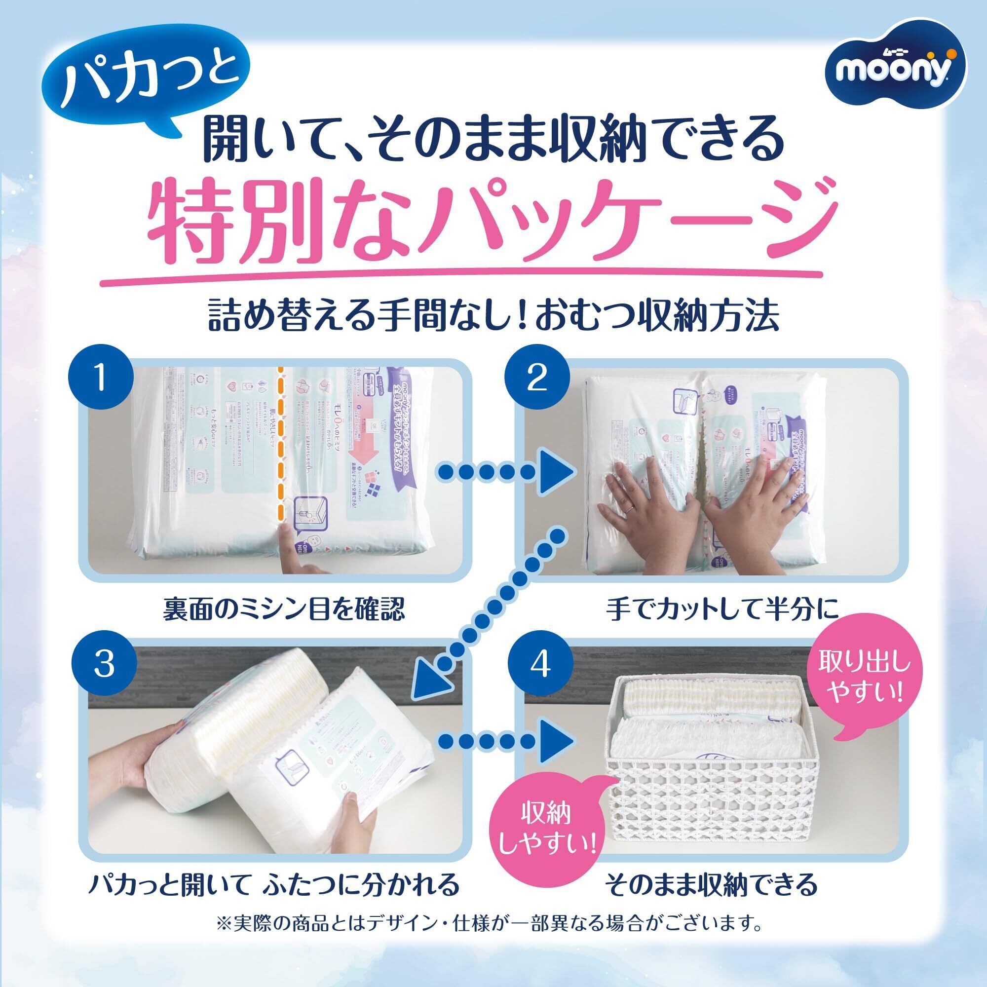 すっぽりハイウエストがぽっこりおなかの形に合わせてしっかりキープ! 幅広なピタッ! とギャザーが足まわりにフィット。だから赤ちゃんがどんなに動いても、すきまモレ安心。さらに、無添加弱酸性トップシートで肌に安心。