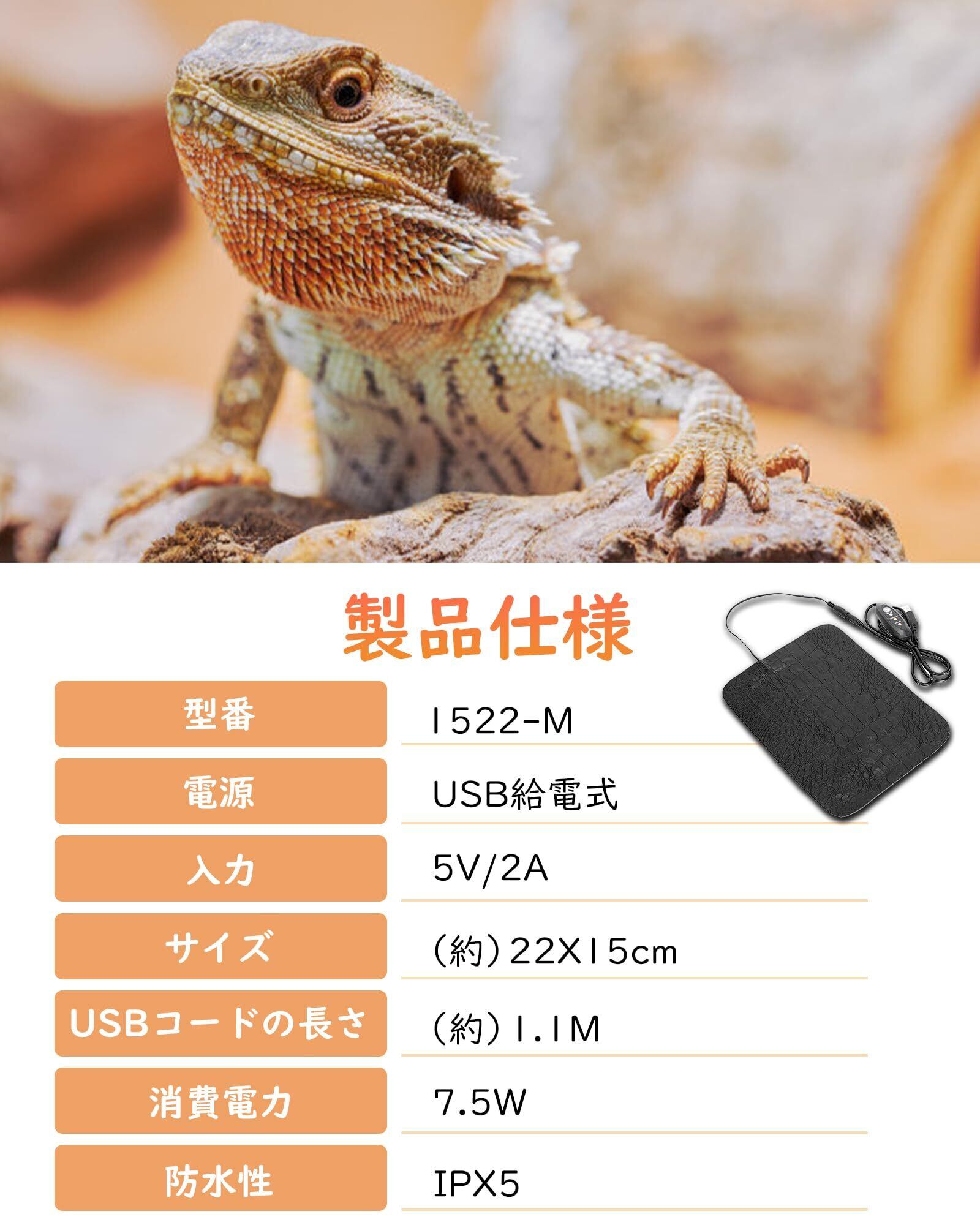 2025新登場 爬虫類 ヒーター パネルヒーター 小動物 ヒーター USB給電式 3段階温度調節 タイマー設定 ヒートマット ペットヒーター 両生類/爬虫類/小動物に最適 M(22X15cm)