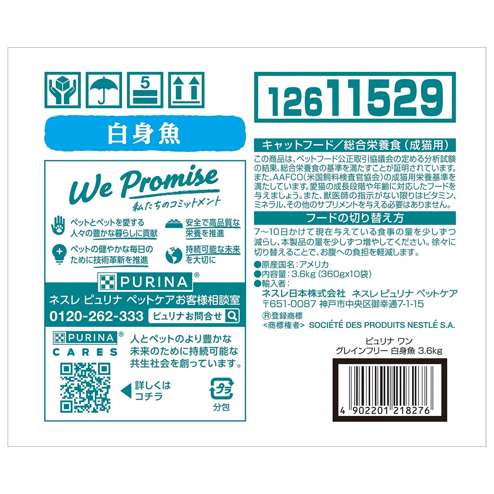 ピュリナ ワン キャット ドライ グレインフリー1歳以上 白身魚 3.6kg(360gx10袋入)