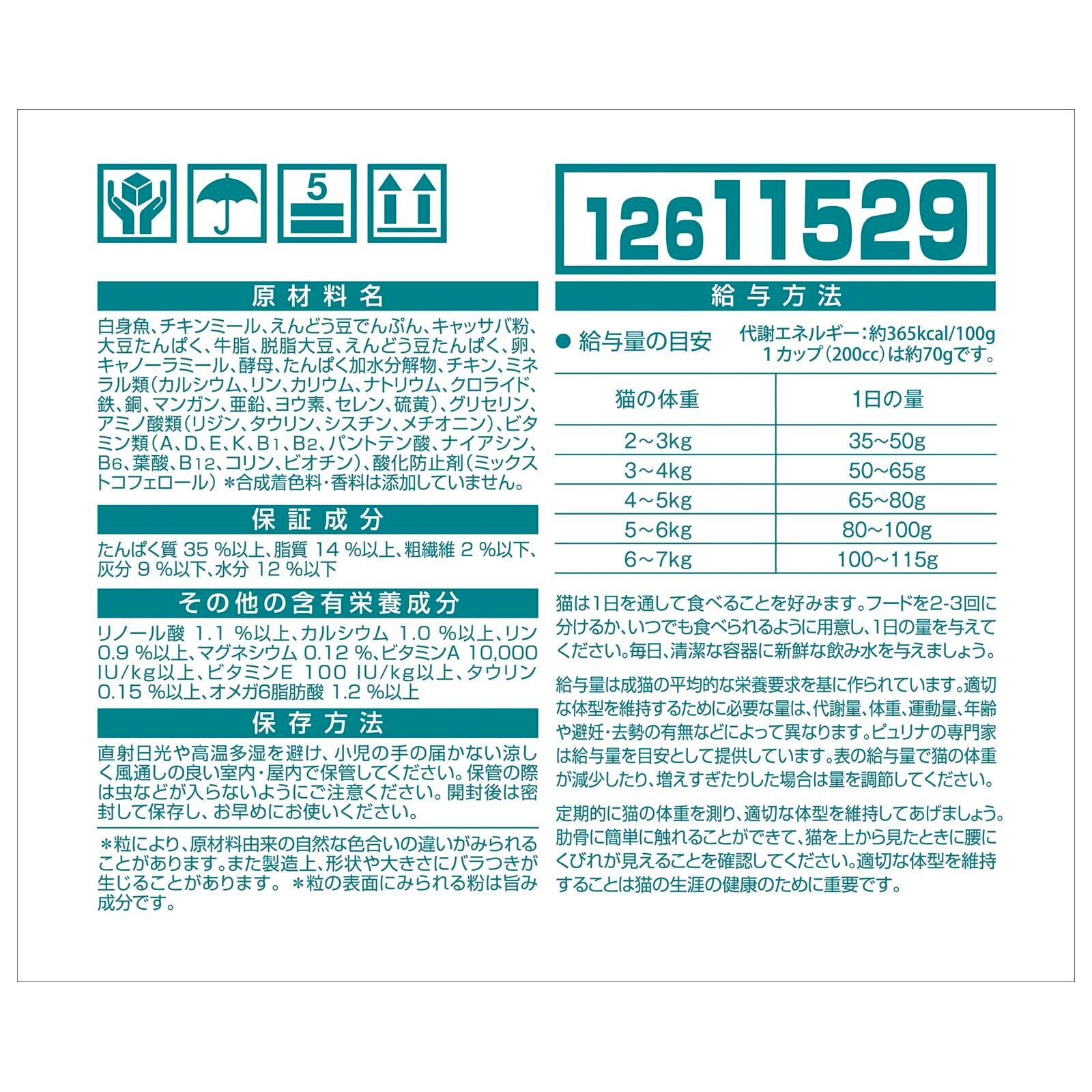 成分:たんぱく質:35%以上、脂質:14%以上、粗繊維:2%以下、灰分9%以下、水分12%以下
