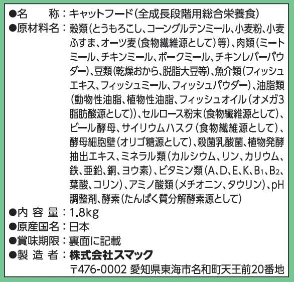 スマック キャットスマック 毛玉吐き戻し軽減 1.8kg キャットフード