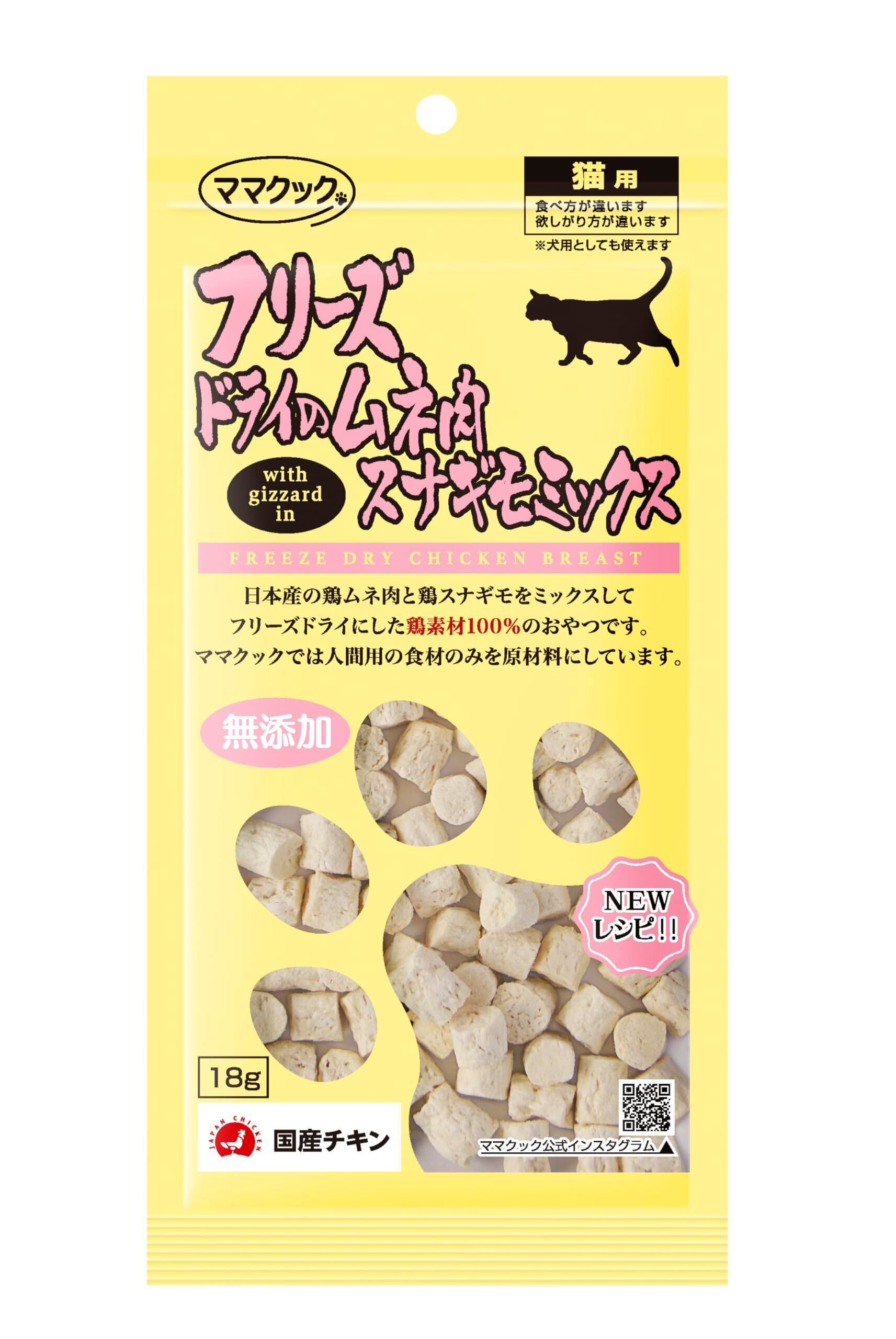 ママクック 猫 おやつ フリーズドライのムネ肉スナギモミックス猫用 18g 国産 チキン 無添加