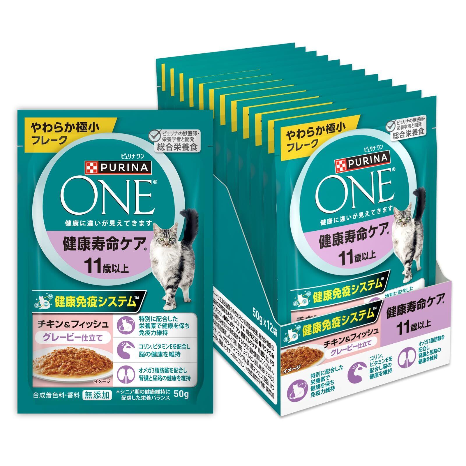 ピュリナ ワン キャット パウチ 健康寿命ケア 11歳以上 チキン&フィッシュ グレービー仕立て 50gx12袋
