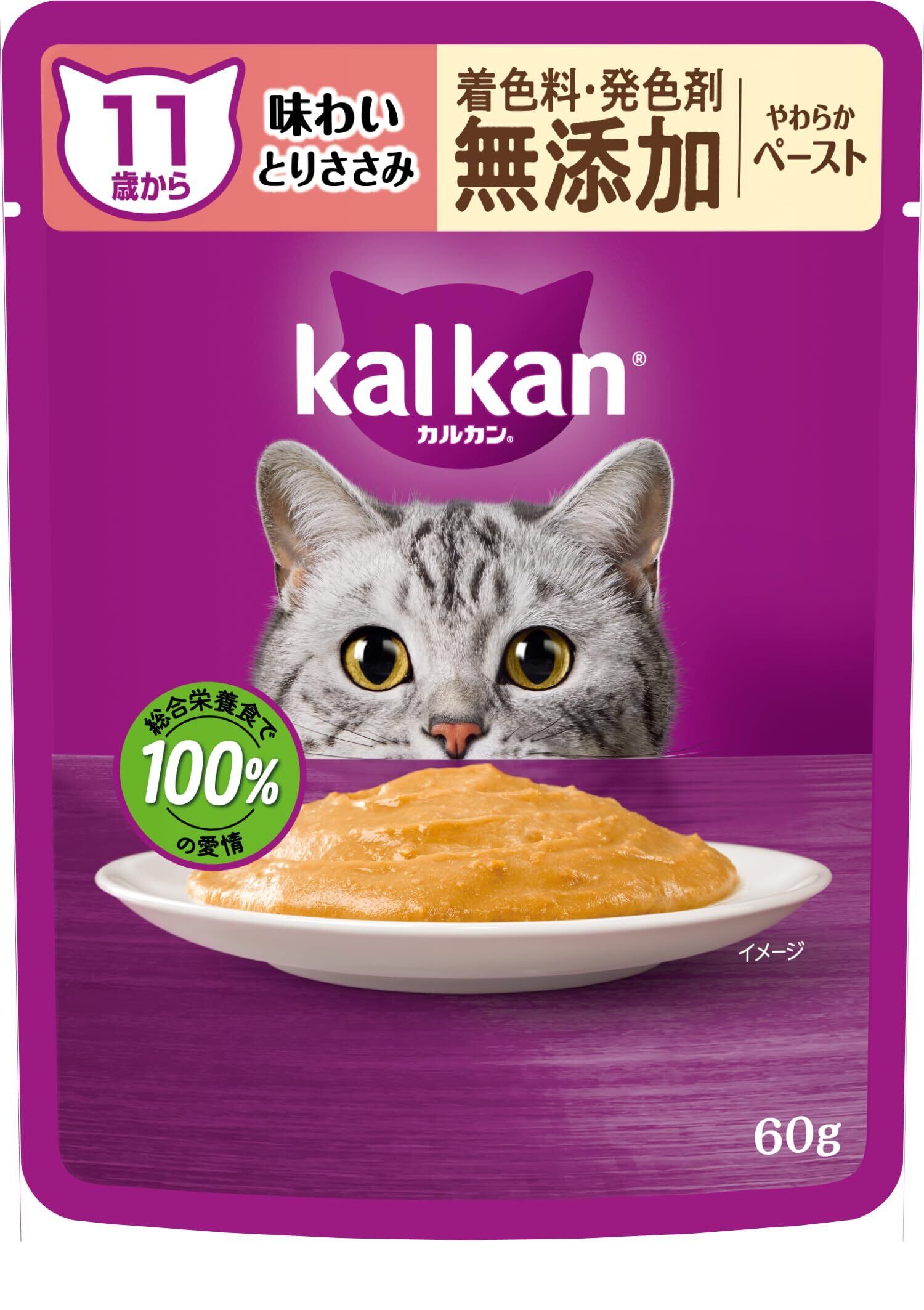 カルカン パウチ ペースト 11歳から 60g×12袋 着色料・発色剤 無添加 味わいとりささみ シニア 高齢期 やわらかペーストウェットフード キャットフード 総合栄養食 水分補給 毎日食べることを考えたウェット 猫 kal kan お試し 新カルカン