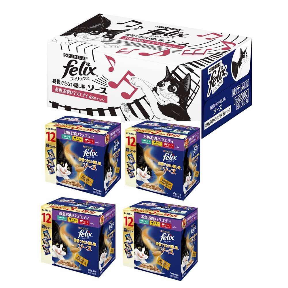 フィリックス パウチ 我慢できない隠し味ソース お魚お肉バラエティ(ツナ・チキン・ビーフ) 50gx48袋入り(12袋x4箱)