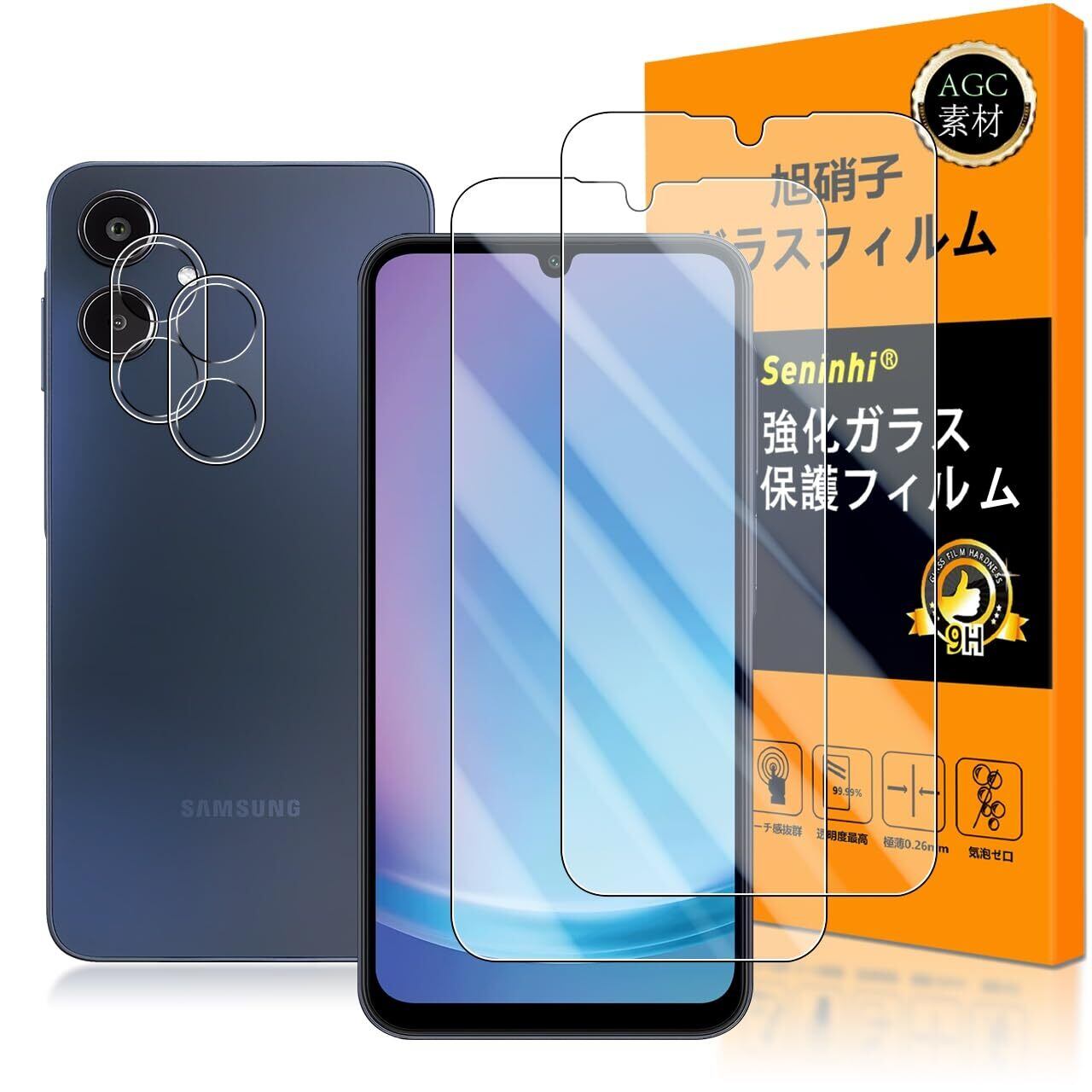 対応 Galaxy A25 5G ガラスフイルム 指紋認証対応 【2+2枚セット 日本製素材 - 高 品質 】【 SC-53F SCG33 フイルム(2枚入り) カメラフィルム(2枚入り)】 強化ガラス 液晶 ギャラクシーa25 5G 保護フィルム ケース 3D Touch対応 撥油性 超耐久 高光沢 超薄型 液晶 防塵 防滴 薄型 硬度9H 指紋防止 衝撃吸収 高透過率 飛散防止 貼り付け簡単 気泡ゼロ 極薄 指紋認証鋭敏 ラウンドエッジ加工 SENLX-TMGA25-2