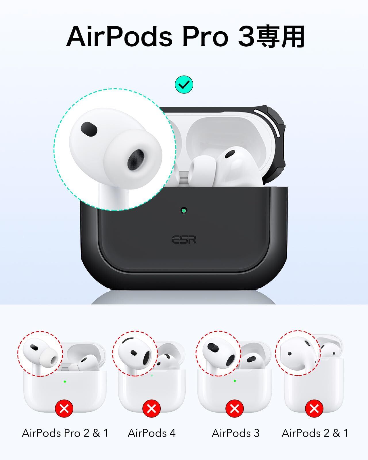 【対応機種】: 本ケースカバーはAirPods Pro 3(2025年モデル)のみ対応。イヤホン本体と充電ケースは含まれていません。