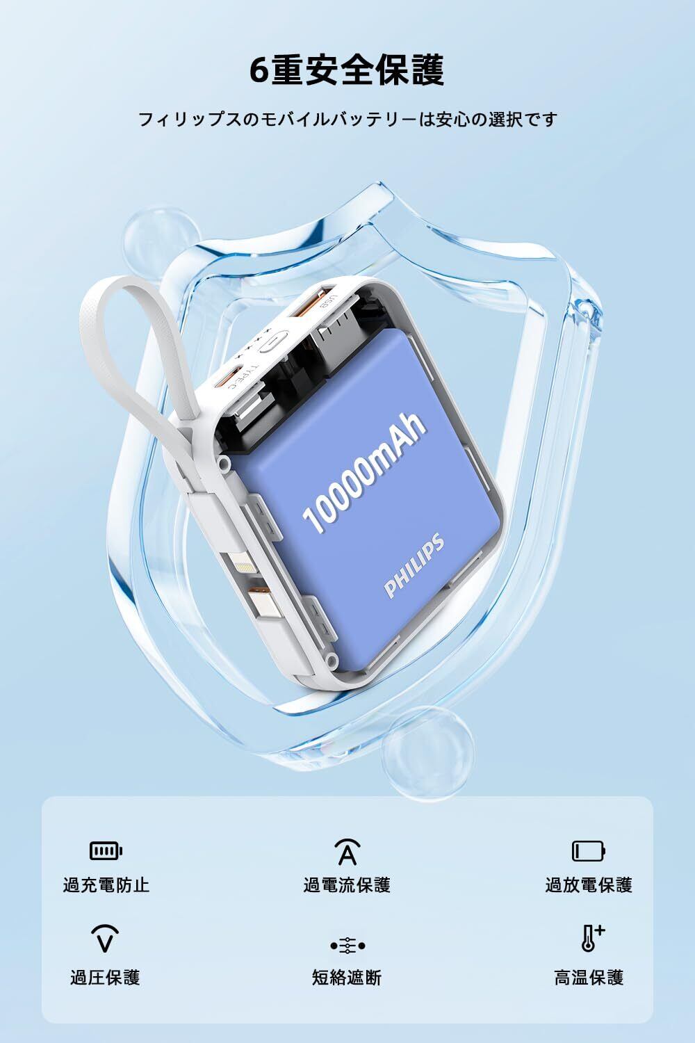 【多種安全保護&品質】過充電、過放電、過電流、過電圧、過熱、短絡遮断など基本的な保護機能を搭載します。さらに、PSE認証も済み、より良い安心安全な充電が行えます。弊社が販売しているPhilips商品はすべて正規品です。何かご不明な点などございましたらお気軽にお問い合わせくださいませ。