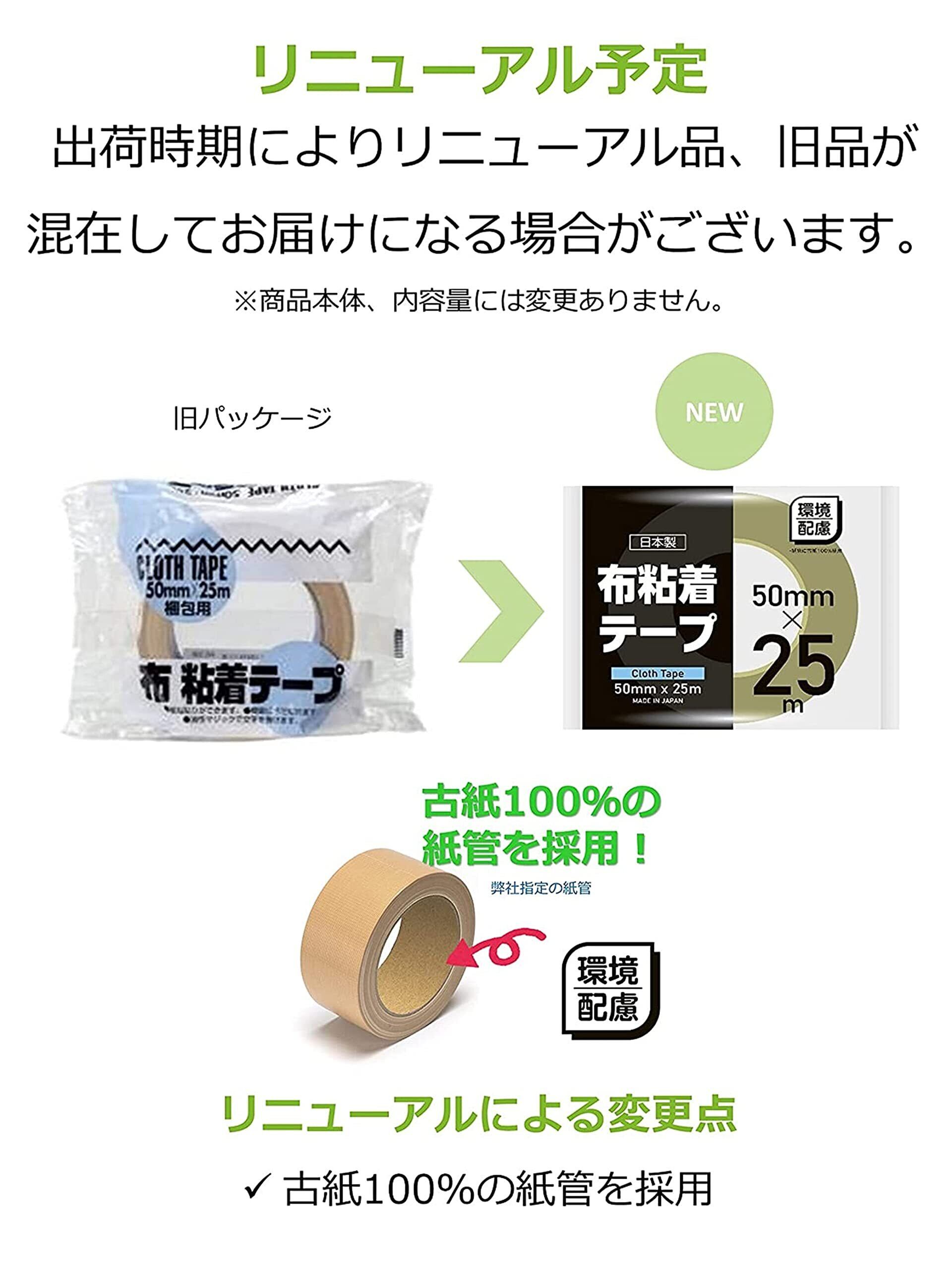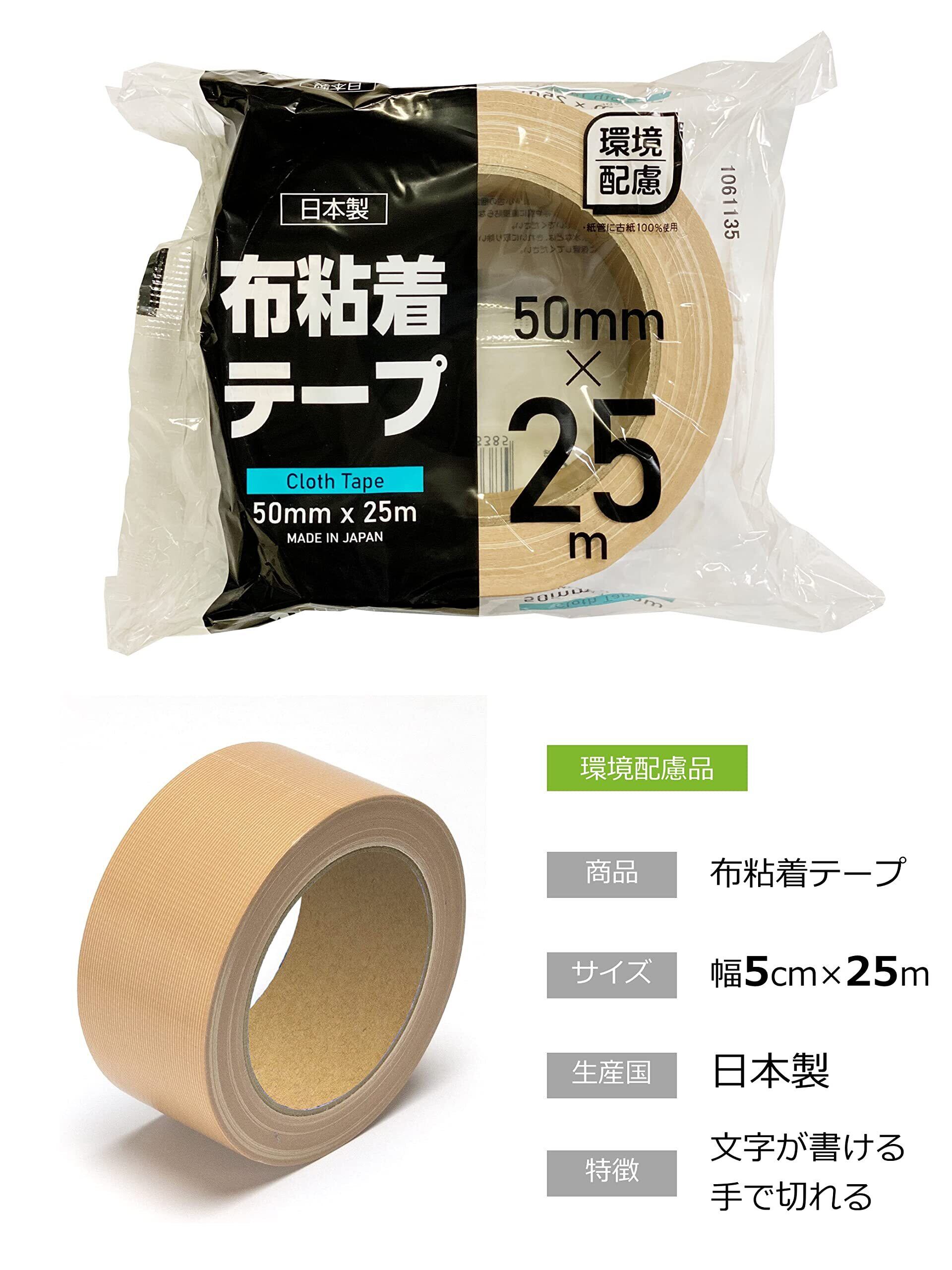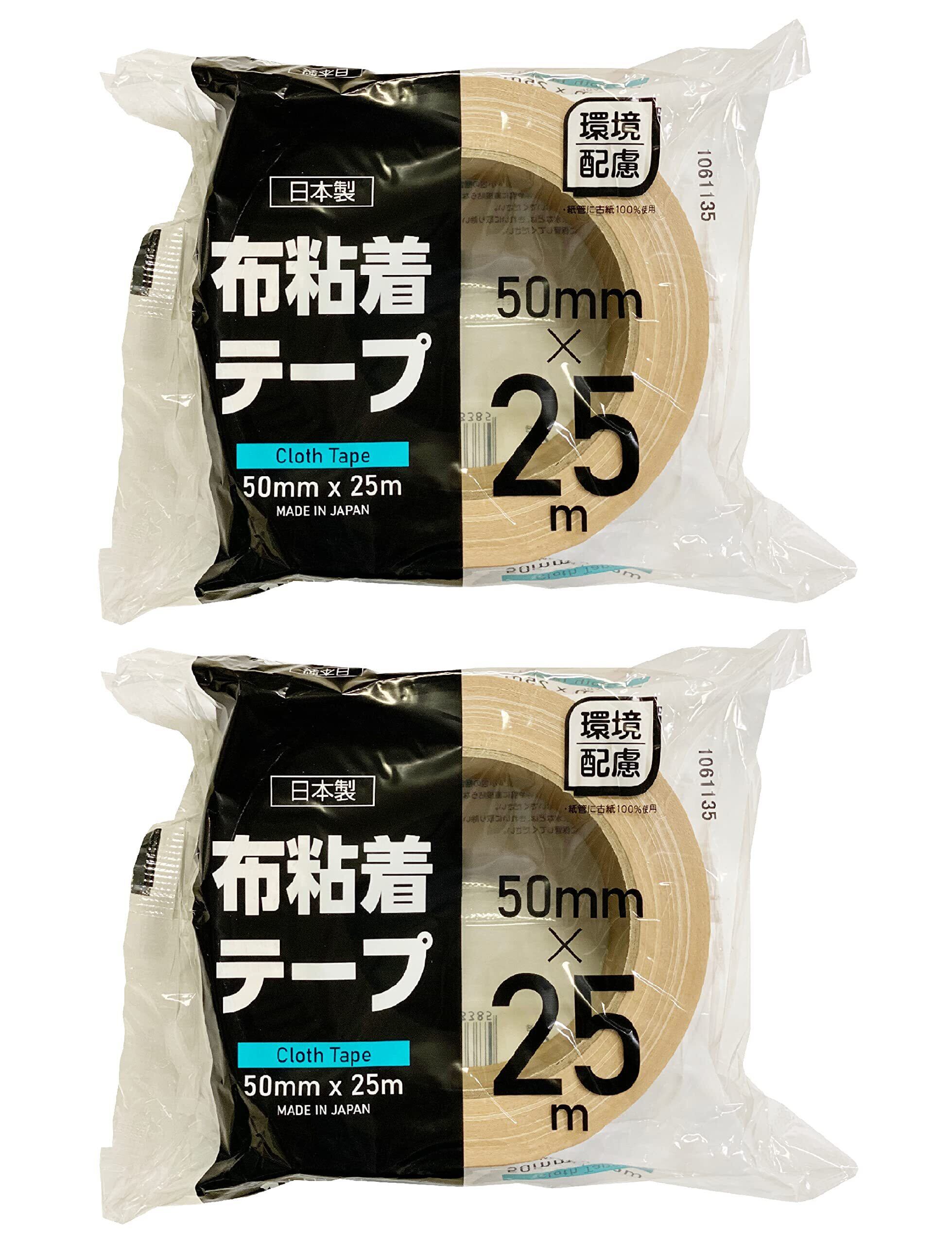 【2022最新】ストリックスデザイン 布テープ 日本製 幅5cm 25m巻×2セット 油性ペンで文字が書ける 防水 重ね貼り可 手で切れる 梱包テープ ガムテープ 布 HD-338F 【 限定】