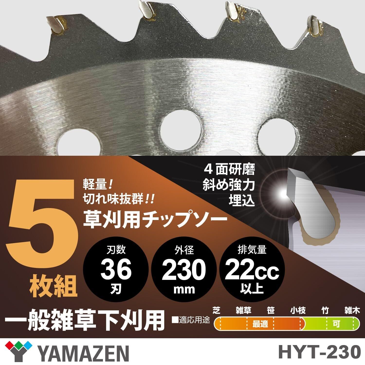 山善(YAMAZEN) 草刈用 チップソー 5枚組 外径230mm×36枚刃 替え刃 軽量 草刈機 刈払機 石 タイル 雑草 除草 荒地 HYT5-230