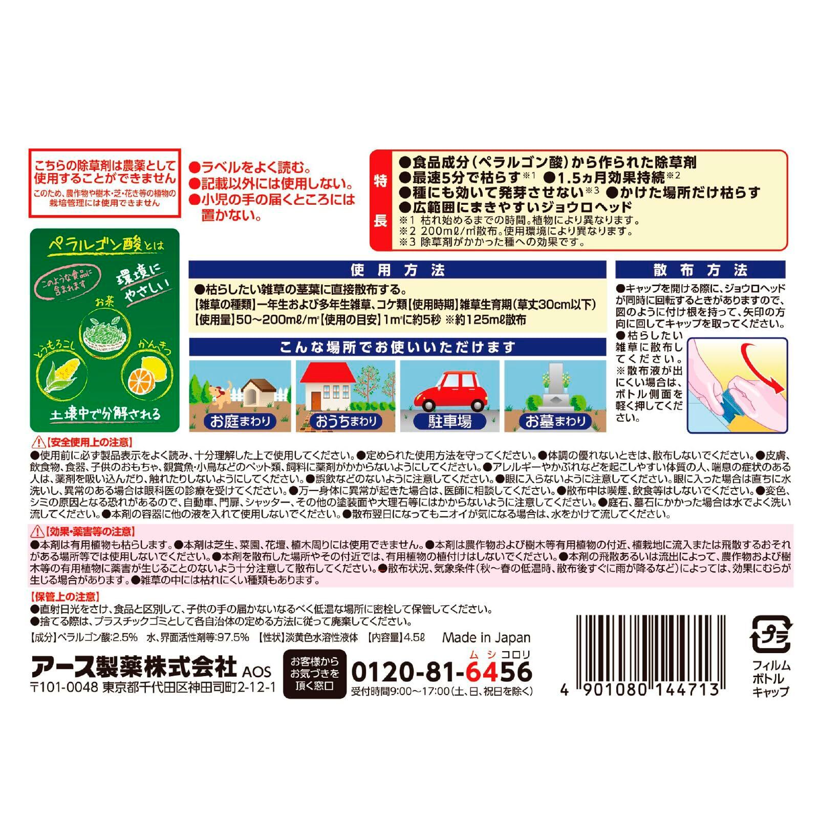 アースガーデン おうちの草コロリ 4.5L ガーデニング ジョウロヘッド (シャワー タイプ) 除草剤 液体 玄関 駐車場 庭 雑草対策 家庭用 園芸 雑草 除去