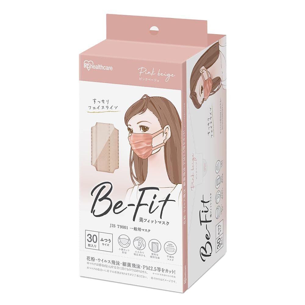 【人気商品】[アイリスオーヤマ] 美フィットマスク 30枚入 ふつうサイズ 個包装 不織布 プリーツ 小顔 通気性 息がしやすい ピンクベージュ
