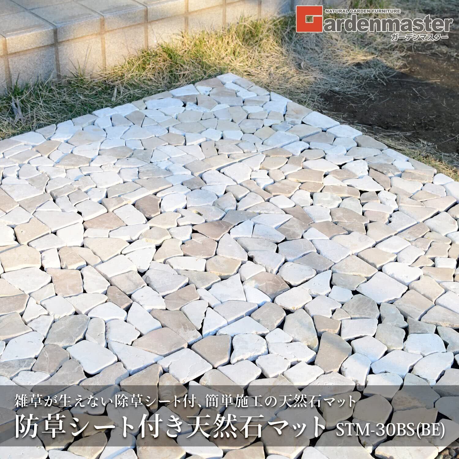【数量限定】ガーデンマスター(Gardenmaster) 天然石マット 単品(1枚) 除草シート付 マット部分30×30㎝ 除草シート部分約33×33㎝ ジョイント不要 カット可能 おしゃれ 雑草対策 ガーデニング 庭 防草天然石マット ガーデンマスター STM-30BS(BE)1P ベージュ | allstore3