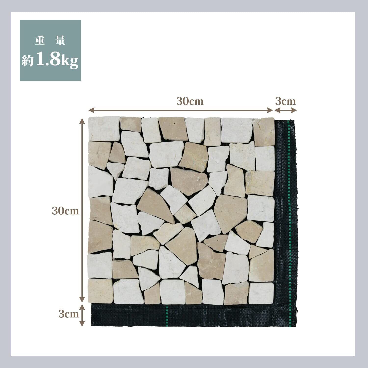 【仕様】天然石部分:幅30×奥行30×高さ1cm/防草シート部分:幅33×奥行33cm/重量:約1.8kg/材質:天然石、ポリエステル/カラー:ベージュ/1枚入り