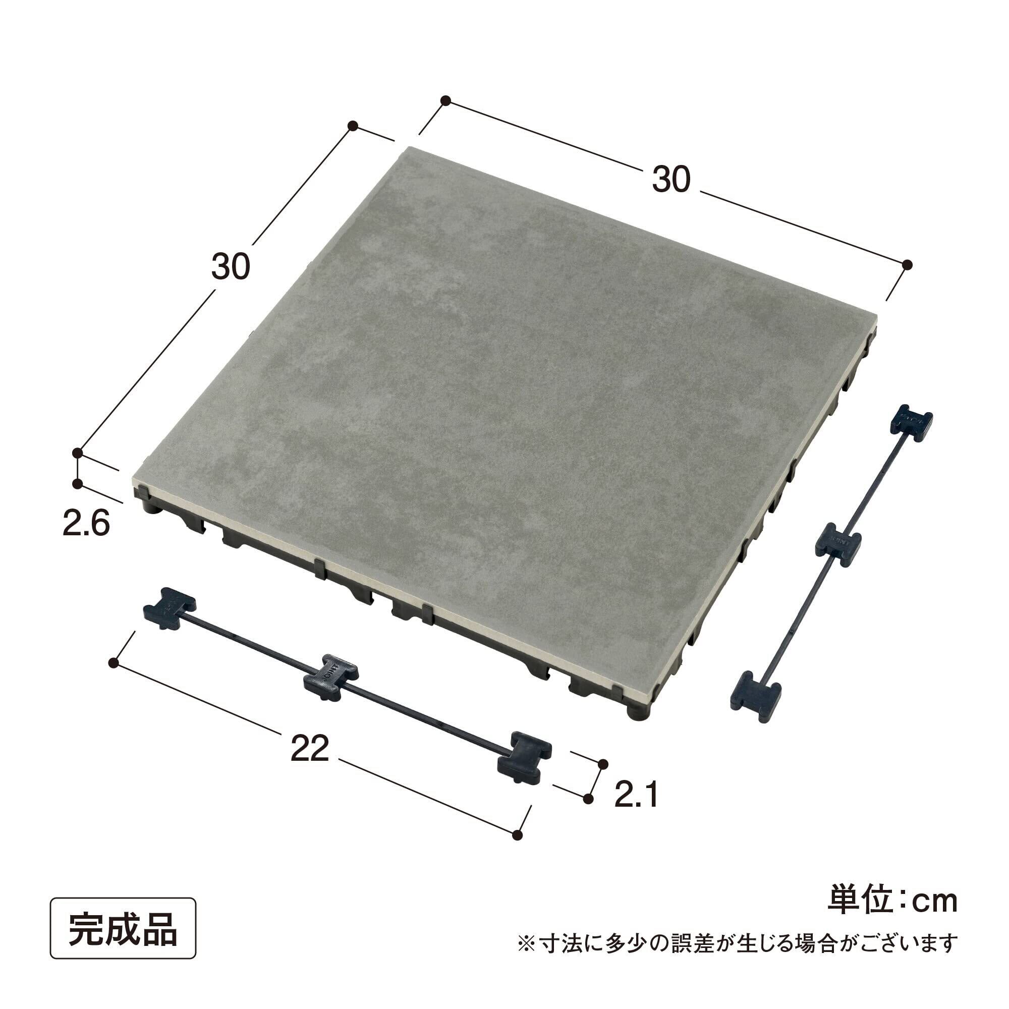裏面のポリプロピレン製ジョイントベースは、デッキと地面の間に**適切な空間を確保**し、水捌けを考慮した設計となっています。これにより、雨水が溜まりにくく、衛生的にご使用いただけます。この「敷くだけタイル 磁器 ダークグレー 9枚組」は、ベランダやテラスを高級感のあるリラックス空間として活用したい方、メンテナンスフリーで美しい床材を求めている方、そして手軽に本格的なタイル敷きをDIYしたい全ての方に最適なソリューションです。**耐久性、美観、施工性**の全てを高いレベルで実現した、タカショーからの自信作です。