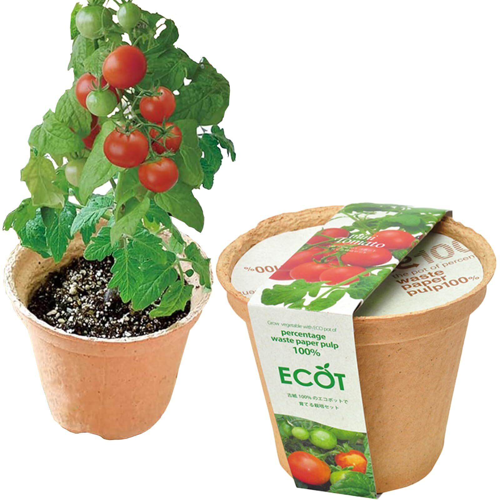 聖新陶芸 家庭菜園 簡単 栽培キット ミニトマト 室内 香草 野菜 栽培セット M 14cm エコット 母の日 プレゼント 誕生日 GD-41109