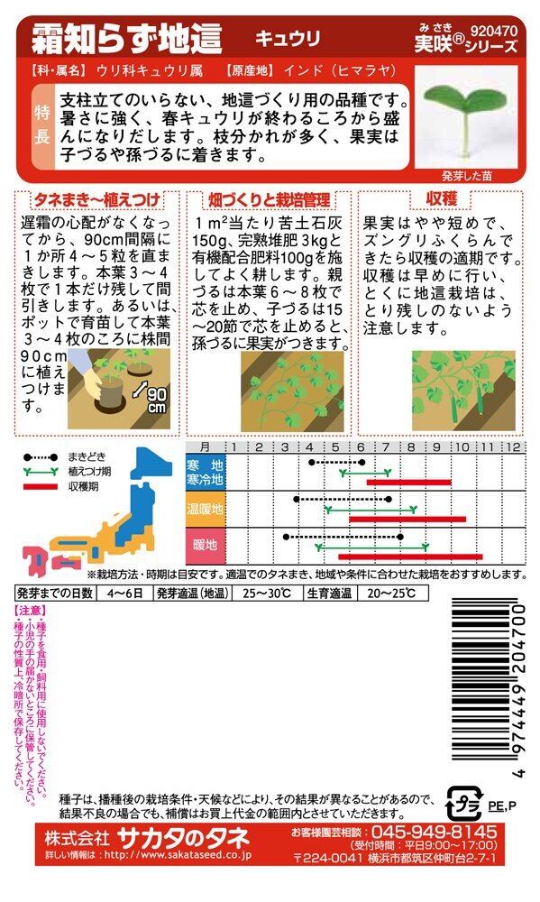 サカタのタネ 実咲野菜0470 霜知らず地這 キュウリ 00920470