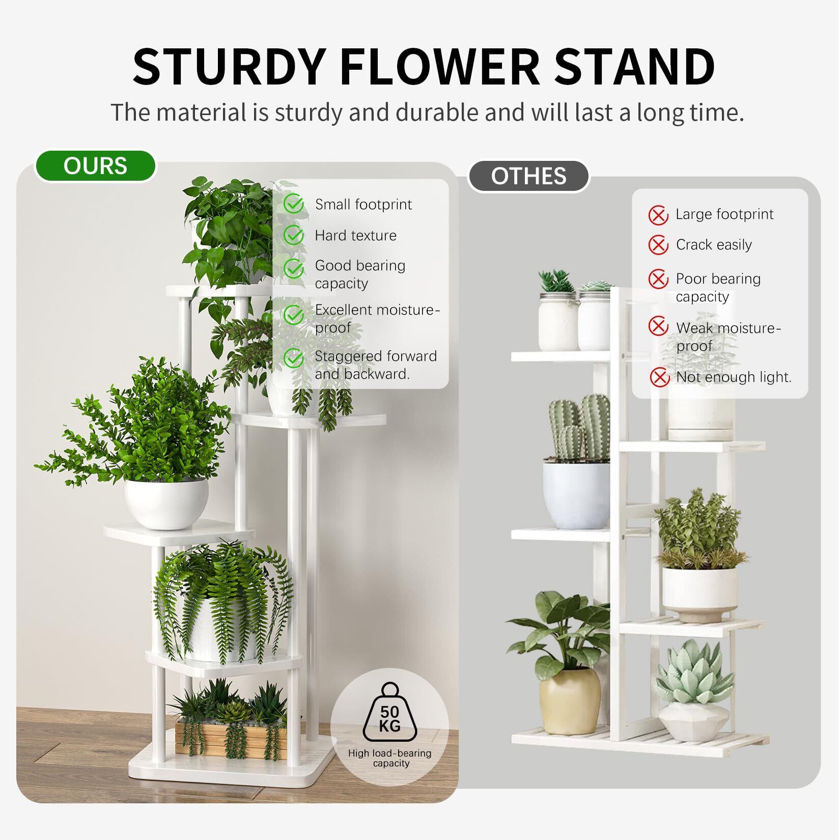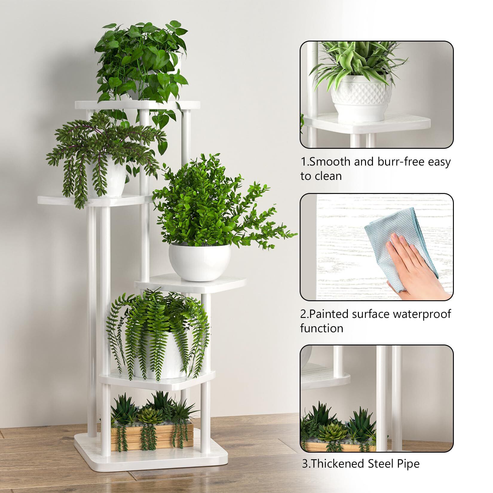 構造の安定性:各層が慎重に設計されており、重量が均一に分散されるようになっています。底部には幅広のベースが装備されており、重い物品を置く際にも倒れるリスクを軽減します。これにより、お気に入りの植物や装飾品を安心して配置できます。