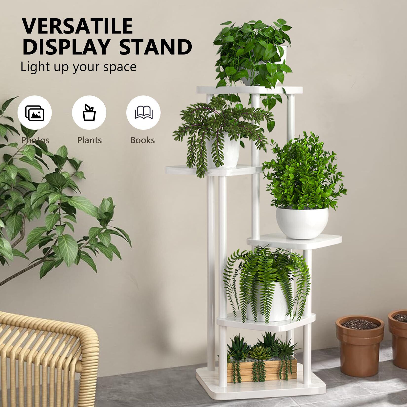 フラワースタンド屋内 金属花棚、多様な植物コーナー高花棚に適し、庭ガーデンリビングベランダ寝室、 (ホワイト, 5 段)