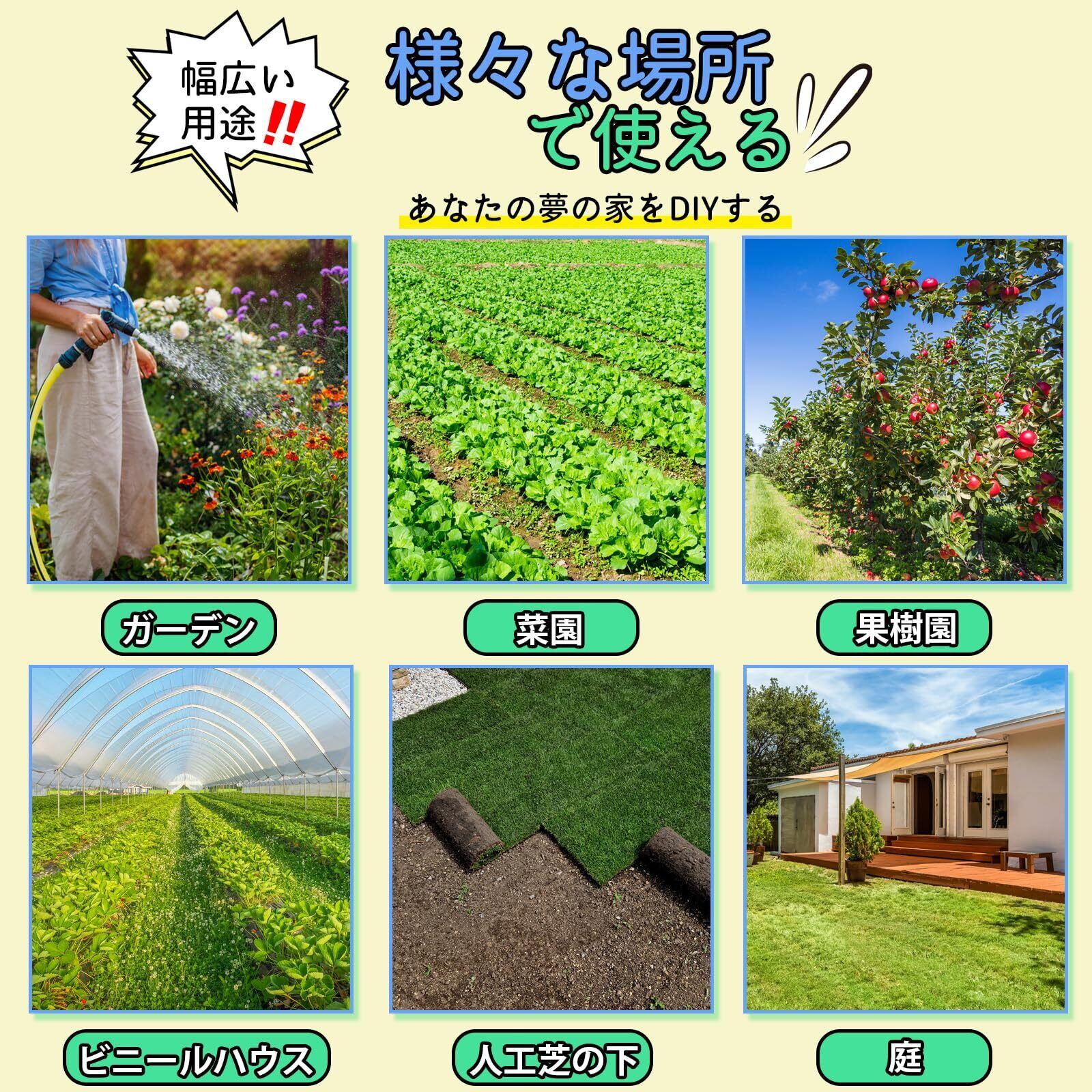【様々なご利用シーン】本商品は、家庭菜園や農業用だけでなく、園芸用や工事用と多用途で活躍します。花壇やプランターの下に敷くことで、土壌の保護や水分保持にも寄与し、植物の育成をサポートします。