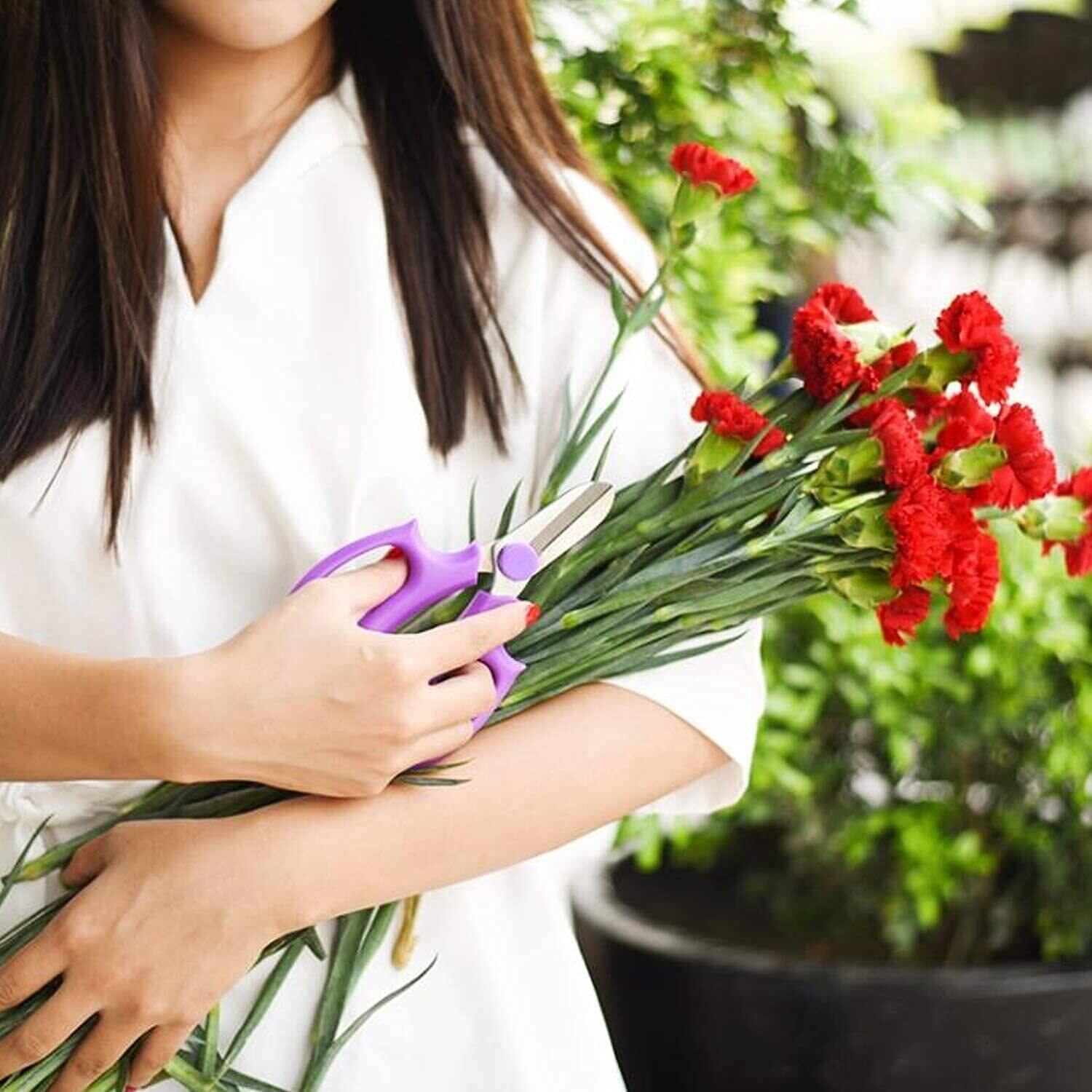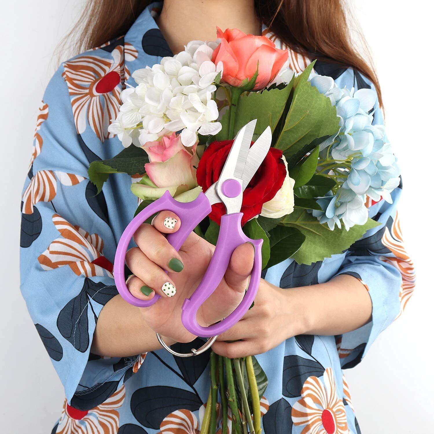 【2022最新】花 ハサミ,剪定鋏 園芸鋏 快適なハンドル付きの庭剪定はさみ、花のアレンジ、剪定ばさみ 、植物のトリミング、剪定鋏カバー付き, 園芸工具に非常に適した高級鋼のプロの花はさみ(紫) | allstore3