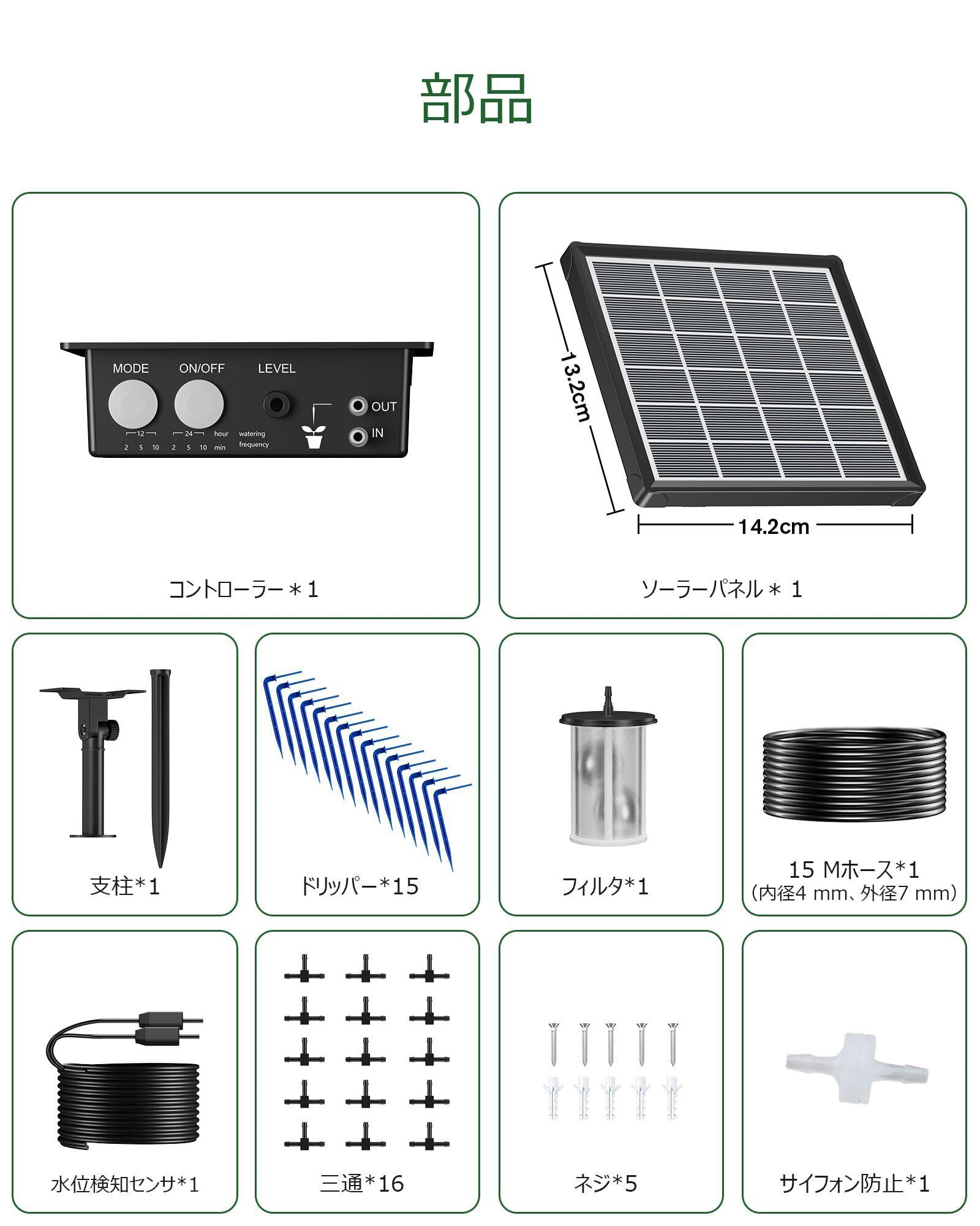 【新春セール】NFESOLAR ソーラー自動水やりシステム 15鉢対応 充電式バッテリー内蔵 6モード設定 日本語説明書付き 15mホース付属 自動散水器 ビオトープ 盆栽 ガーデニング 旅行留守対応 | allstore3