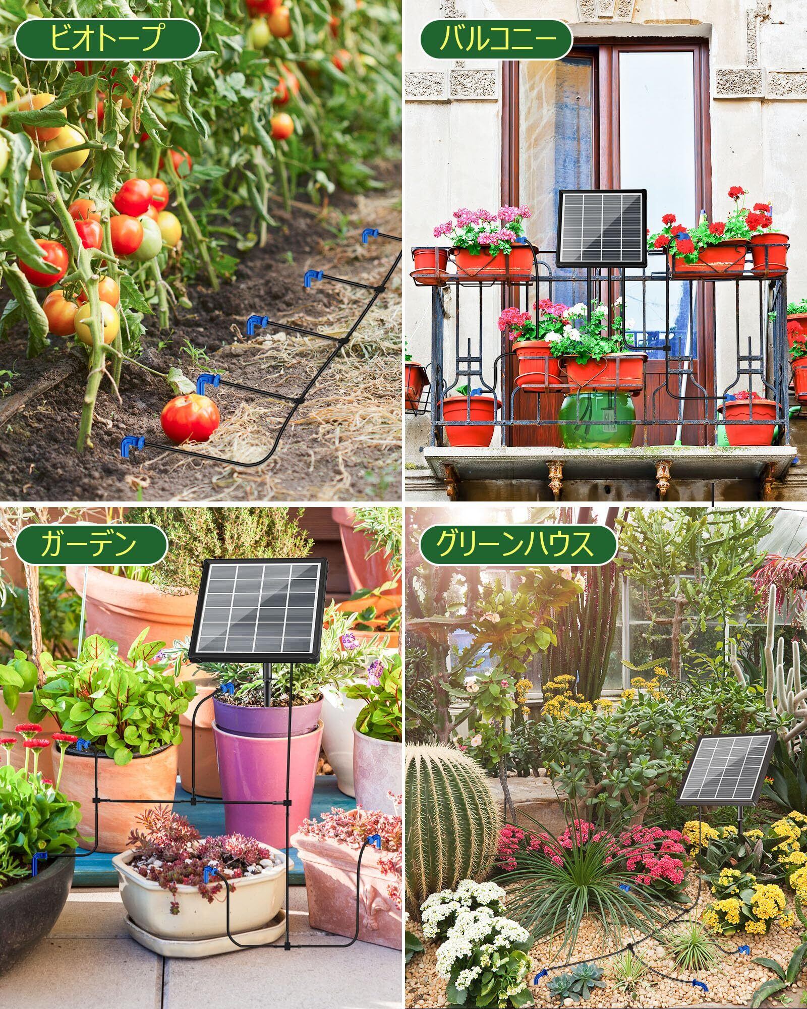 簡単設置&多用途対応:ソーラーパネルは壁掛け・地面挿しの2WAY方式。別売りの水タンク(バケツ等)と接続するだけでOK!ビオトープ、盆栽、家庭菜園、プランターなど幅広く利用可能。