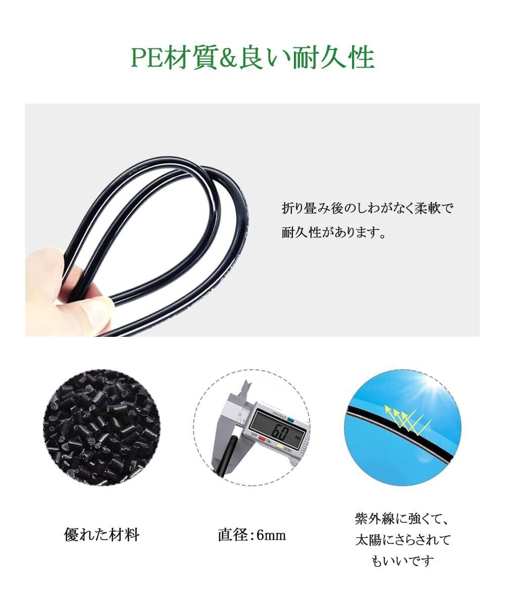 【ミストシャワー】プラスチック製のノズルをブラスにアップグレードし、従来の散水よりも広い面積をカバーし、湿度を効果的に高めます。散水ホースは外径:6mm/内径:4mm、強い日光の下で壊れやすい黒いプラスチックチューブと比較して、弊社のPEチューブは柔らかく、普通な黒いの2倍の耐用年数を持っています。