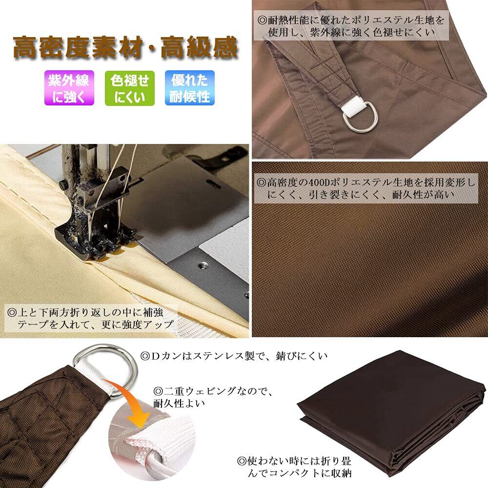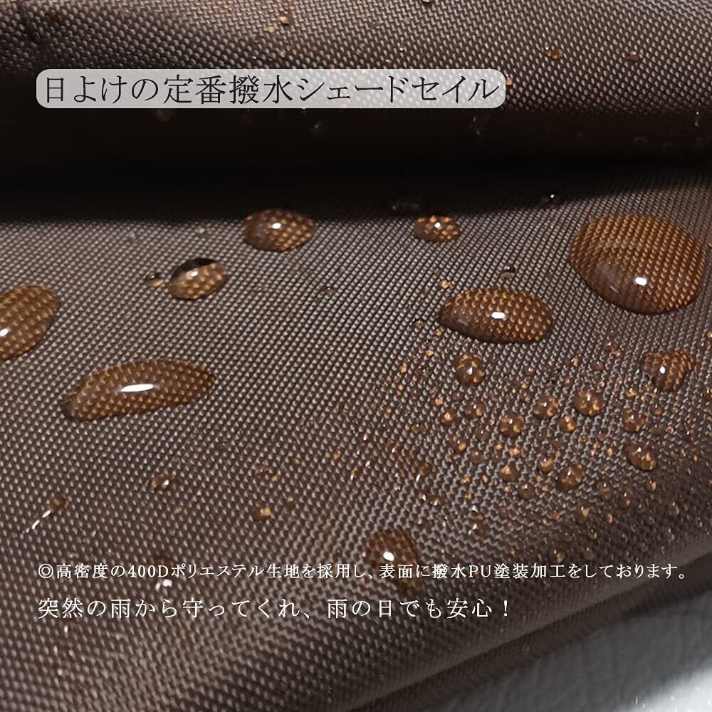 日除け シェード 雨よけ シート 日よけ サンシェード ベランダ 目隠し シェード 防水 撥水 クールシェード シェードセイル UVカット 紫外線 98%カット 庭 デッキ プール 窓ペ 天台 廊下 パーゴラ カーポート キャンプ 野外活動 (モカ, 3x4m)