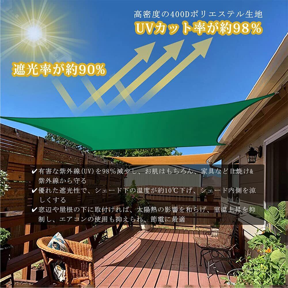 【優れたUVカット効果】本シェードは紫外線を98%カットする高機能商品です。直射日光をしっかり防いでくれるため、大切なお肌を紫外線から守ります。また、撥水加工が施されているため、軽い雨の際でも安心して使用可能です。