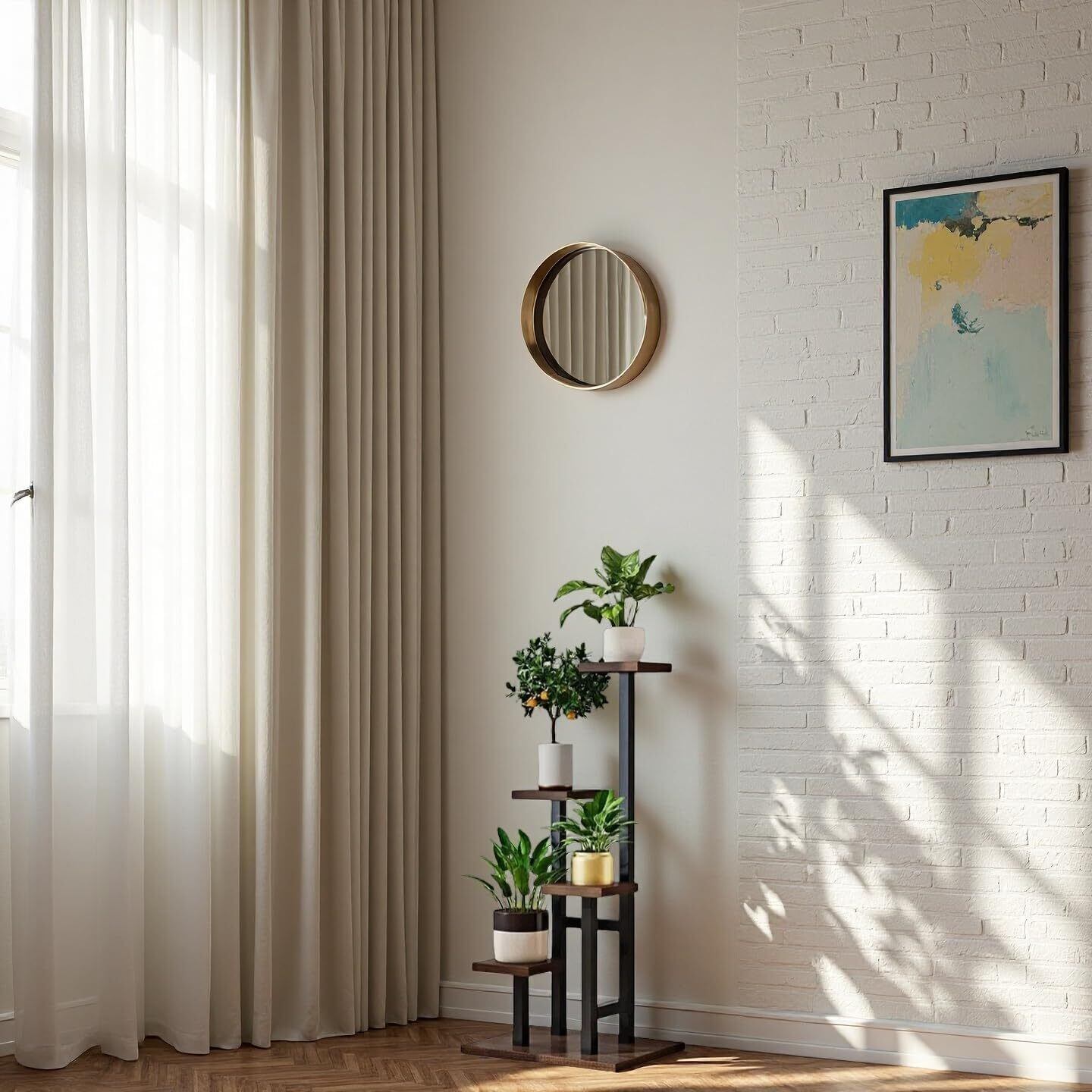 【多機能性とスタイル】このフラワースタンドは、リビングルームやバルコニーだけでなく、オフィスやカフェなど多様なシーンで活用できます。緑を取り入れることで、心地よい空間を演出し、訪れる人々に安らぎを提供します。