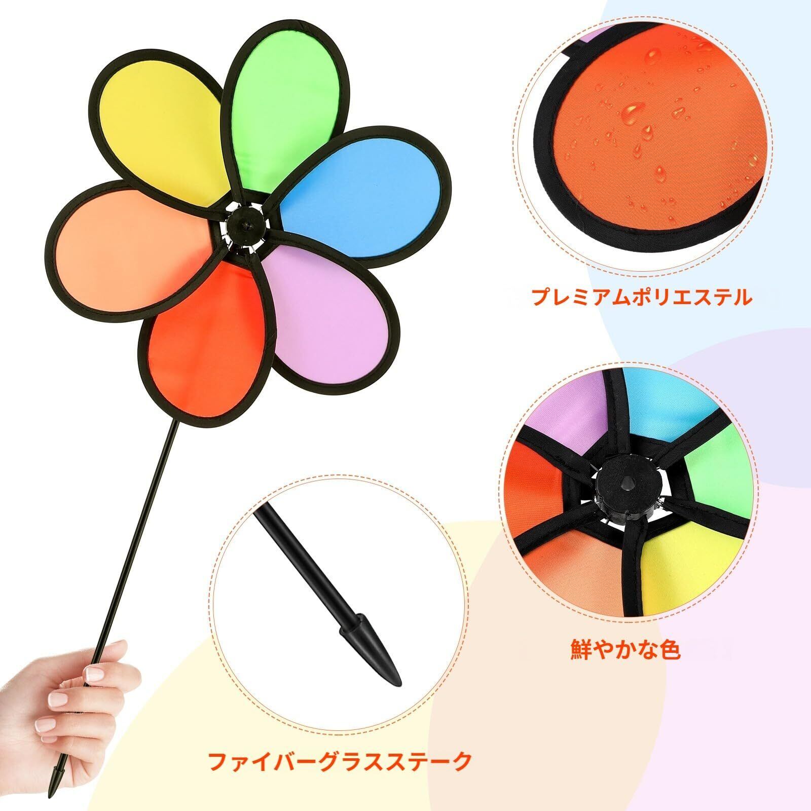 【素材】耐久性のあポリエステル、グラスファイバー製。風車の羽根は軽量設計で、風が吹いても簡単に回転します。こどもたちはこの風車を通じて自然と遊びながら、想像力や創造性を養うことができます。