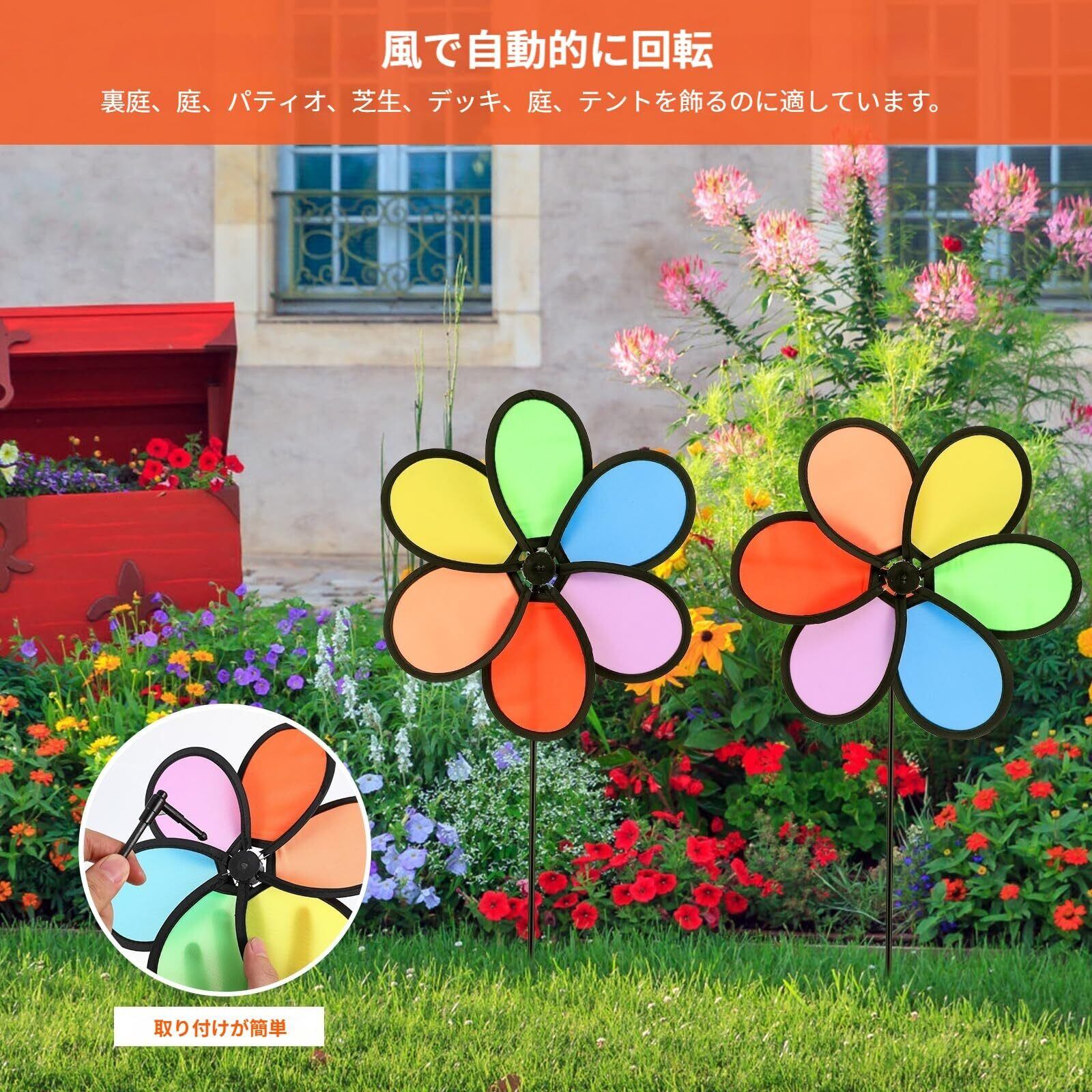 楽しい風を感じる【特価セール】SEWACC風車!お庭やキャンプ、そして様々な遊びの場面にぴったりなカラフルな風車です。花の形をしたこの風車は、風が吹くたびに素敵に回転し、見る人々を楽しませます。