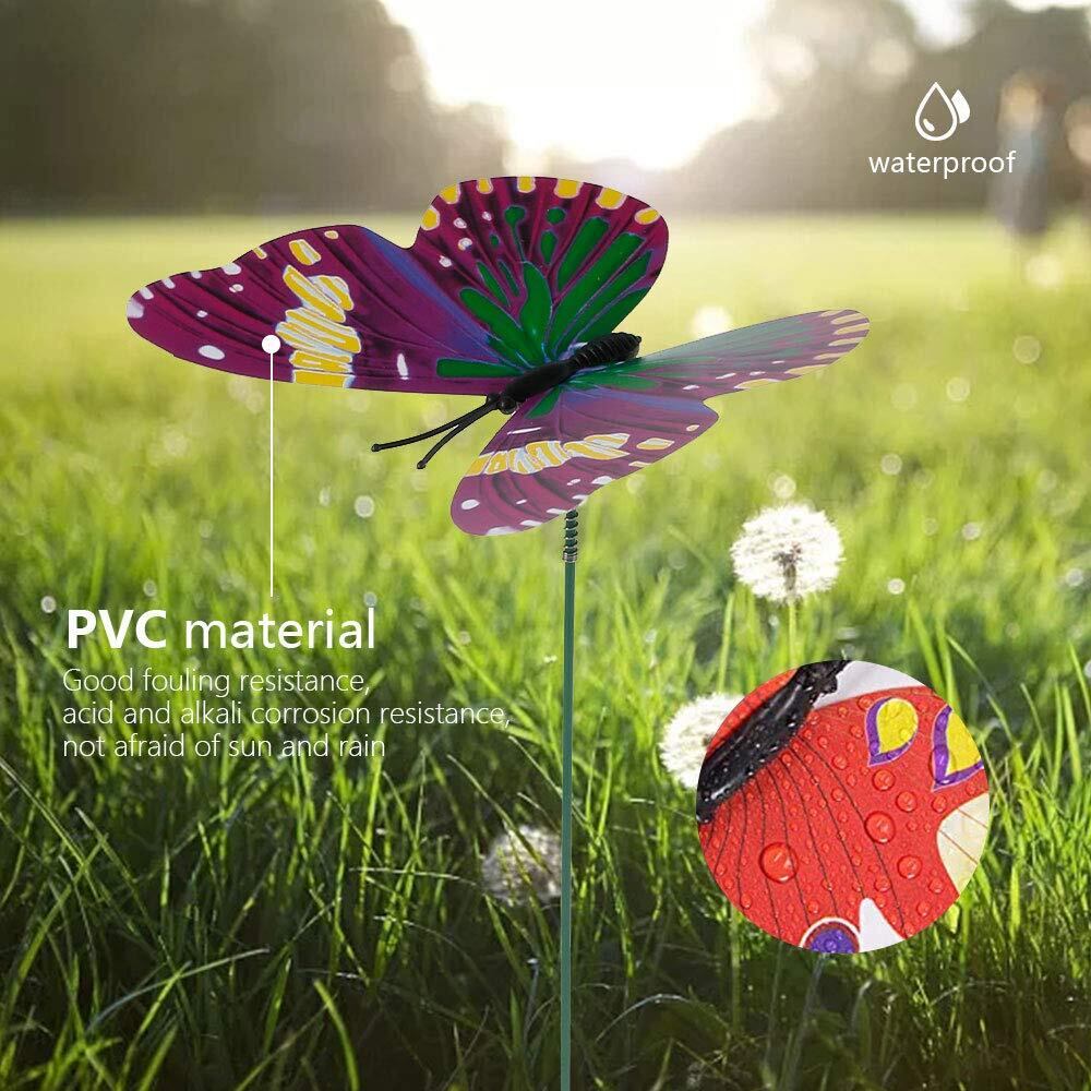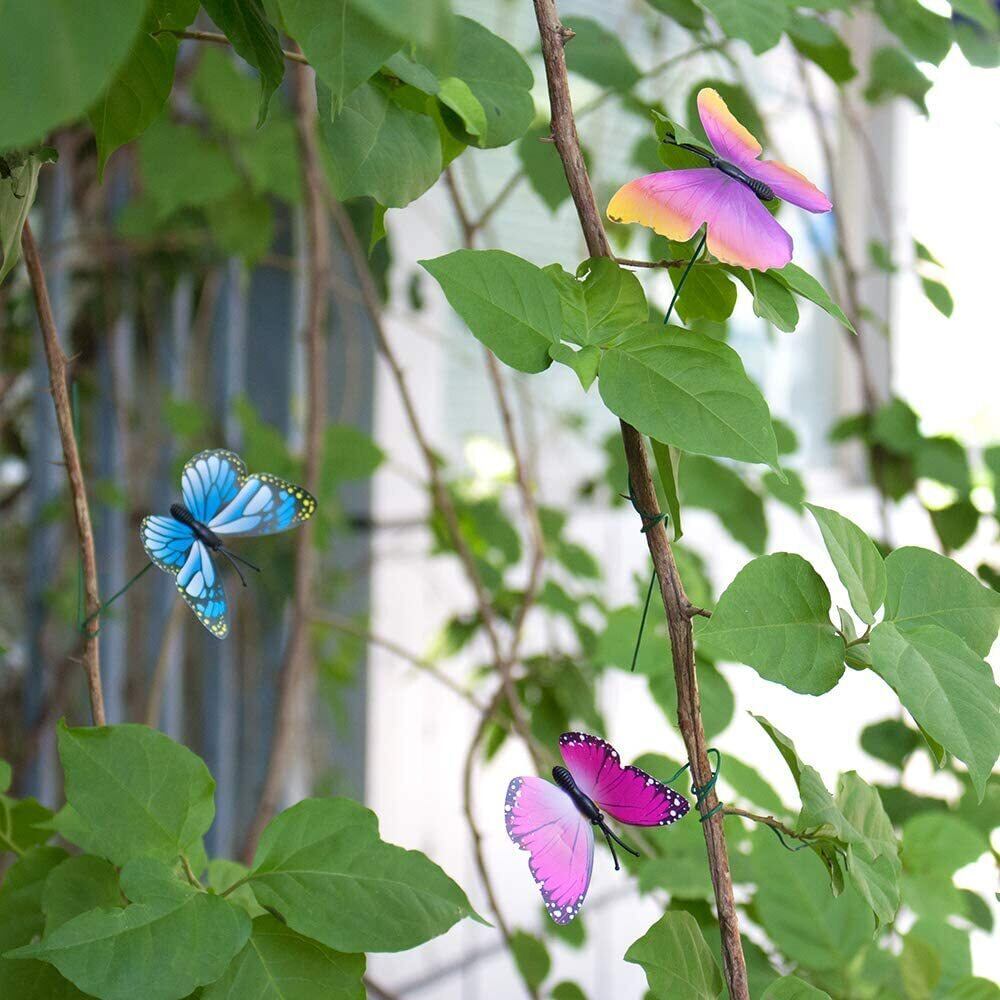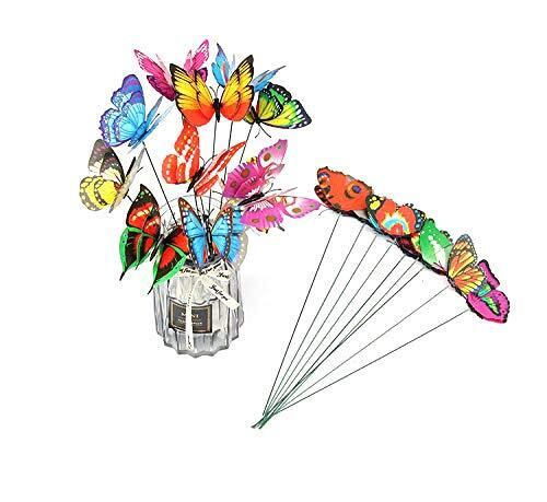 【お得セット】各装飾の蝶のサイズは約6cm ,色:ランダム配達,PVC素材、10個セットの3D蝶飾り、ささえ棒長さ:約25cm