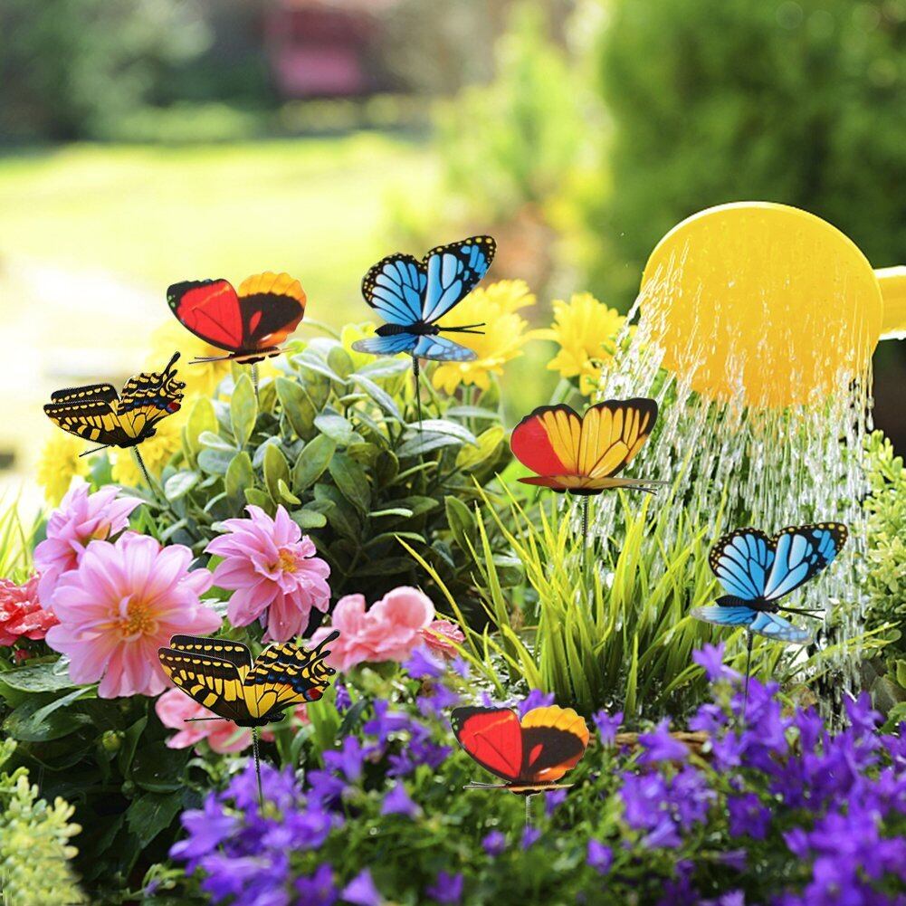 【防水仕様】さまざまな種類の蝶があります、翼を開閉できますのでお好みタイプでガーデンを飾りましょう,屋内と屋外どこでも飾ります,花壇、植物鉢、テラスの飾りに使用できます。