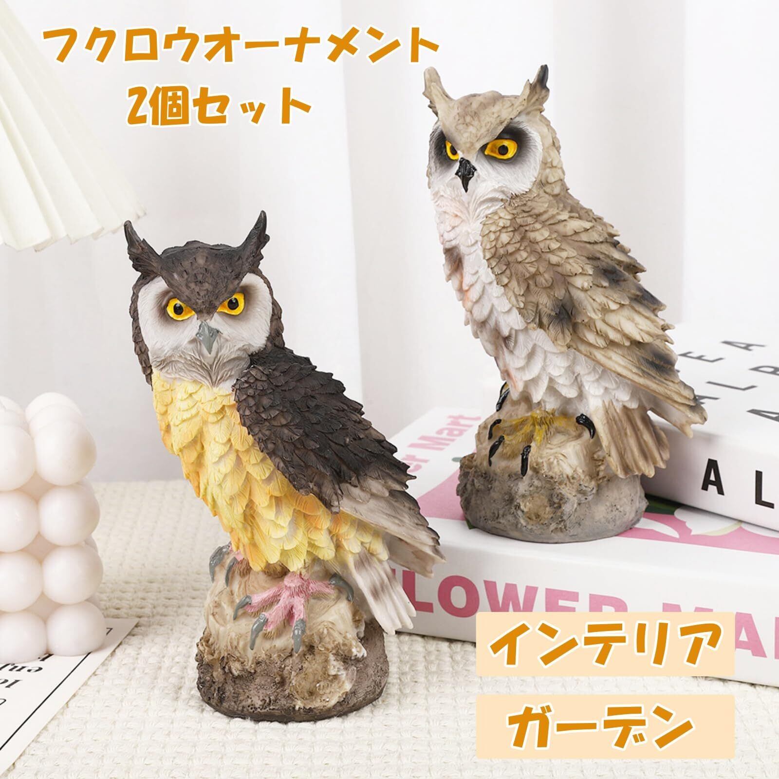 【新春セール】ルナリ フクロウ 置物 2個セット 梟 オブジェ ガーデン オーナメント 鳥よけ 鴉 対策 ガーデニング インテリア
